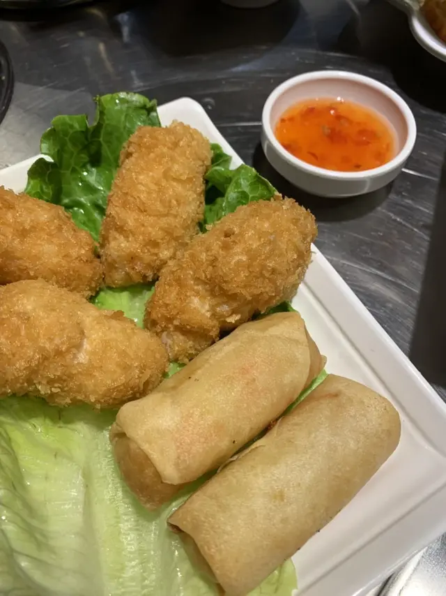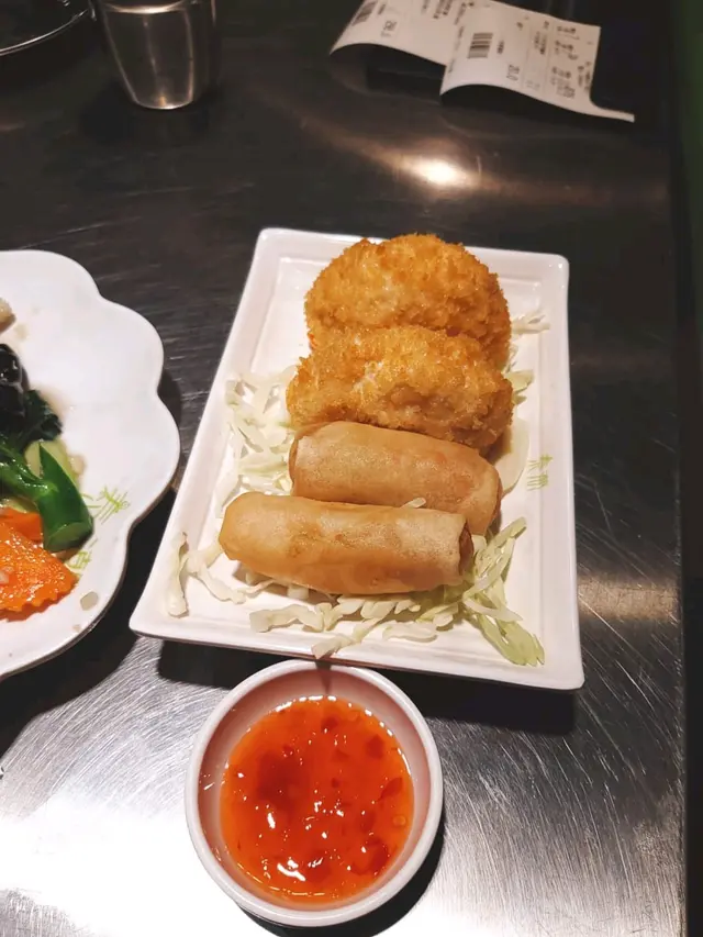 過開中環做嘢、收工突然間想食泰國菜。上網一search、原來中環都唔少泰國菜。眾多嘅泰國菜當中,我就最揀咗泰潮。一嚟泰潮好評眾多,二嚟睇到餐牌價格都好相宜。未去到餐廳、我就已經揀好咗,要點晚市2人套餐B。晚市2人套餐B,有一個湯、兩個小食、兩個菜、一個例牌海南雞、兩個飯、同埋兩件甜品。 咁多嘢食都只係$298,確係好抵。同埋份量其實三個人食都足夠。冬蔭功湯湯有豬肉丸、大蝦同雜菌、都算係幾足料。湯嘅味道好好,但如果可以再辣少少就更好喇。酸辣鳳爪食酸辣鳳爪,我最驚就係太過辣。泰潮嘅酸辣鳳爪就剛剛好。而且鳳爪就住每一隻趾位剪開咗,一口一條,唔會話多咗幾隻趾會食到成咀都係。泰潮海南雞泰潮嘅皇牌菜,雞好滑好香,又唔見有脂肪。連埋雞皮入口完全無罪惡感。點埋海南雞用嘅醬汁,提升海南雞嘅味道。再配埋雞油香飯一齊食先係皇道。雞油香飯有得揀香油雞飯,當然會叫依個啦。粒粒飯都係金黃色,充滿住雞油嘅香味。可惜嘅係唔記得咗個2人套餐有招牌咖喱。早之應該叫一個雞油香飯、另一人叫絲苗白飯。泰式炸蝦餅拼春卷雖然單碟嚟睇份量唔算太多,但以整個2人套餐嚟講,其實就好足夠喇。蝦餅彈牙有蝦味。春卷就係齋春卷嚟,變咗唔會食太多肉,相對比較健康。招牌咖喱招牌咖喱可以點配牛筋腩、豬頸肉、或者雜菜。我哋點咗配豬頸肉。咖喱非常之香、同豬頸肉都好夾。豬頸肉好鮮嫩。唯一可惜嘅係我哋兩個飯都點咗雞油香飯,早知應該一個雞油香飯、一個絲苗白飯,咁就唔會浪費咗咁香咁好味嘅咖喱喇。泰式蒜蓉炒雜菜蒜蓉味好夠,係依一餐嘅蔬菜主要來源,整份菜都好好味道。泰式甜品甜品係兩件細細嘅椰汁糕、清甜好味。幫依一餐劃上完美嘅句號。…查看更多