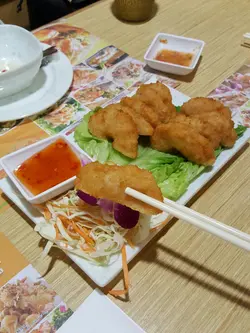 位於尖沙咀既呢間新曼谷泰國菜館其實係灣仔都有分店。記得食既時候男朋友仲係TST返工,26號當晚仲係拍拖紀念日,我一早已經去接佢收工,準備一齊開餐。當初點解揀呢度都係因為佢夠乾淨,地方又夠大,唔洗同人逼。兩個人傾下計坐耐少少都唔怕。就算係晚飯時間餐廳都盡量安排到卡位比我,好貼心呀,因為我真係好想同男朋友排排坐痴到實一實嘛!(餐牌)呢度真係要咩有咩。樣樣野都齊。就連白酒紅酒都有!先黎個冷盤先,男朋友最鐘意就係食生蝦。8隻圍成一圈,冰上面仲有一層保鮮紙,好衛生。蝦仔隻隻都鬼火咁新鮮,甜甜地加埋蒜頭同辣椒,點埋個泰式辣汁,好正!8隻根本唔夠食⋯男朋友話D蒜頭大細岩岩好,唔會太大粒太重蒜味搞到D蝦失色。再黎泰國菜一定要有嘅蒜蓉包!每一口都滿滿牛油香,蒜蓉同牛油已經混成一體,你是我的唯一。不過可能太多牛油,所以包比較軟身。冬蔭公湯係必叫架喇,呢個辣辣地既冬蔭公湯河一支棒架。賣緊$48蚊咁既價錢,量多,最想讚下佢就係菇類落得比較多。好健康呀。雖然話得兩個人,但總係會想食D小食。我地叫左個炸既蝦餅,同幾串串燒。串燒肉厚,唔算嫩口,但勝在新曼谷呢度特有既醬汁。令肉既層次更高。炸蝦餅無咩油,仲食到小小蝦肉TIM。當晚兩丁友真係食左無限咁多野,已經多到記唔清。非常非常推薦新曼谷泰國菜館,新裝修之餘食物又正,無論一班人定兩個人一樣都咁適合。…查看更多