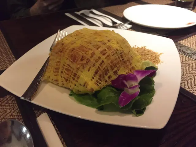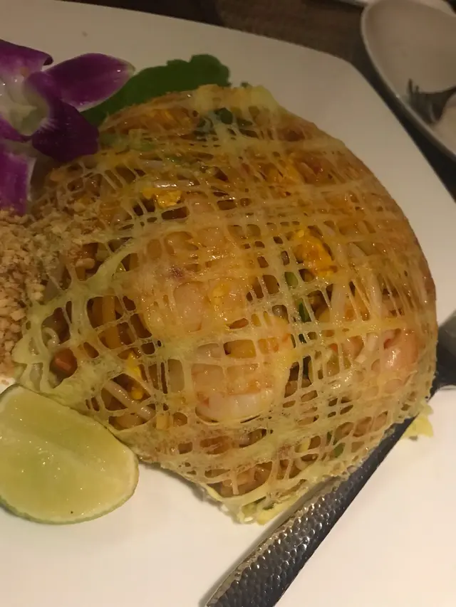 泰式蝦炒金邊粉 ($98)金邊粉即叫即炒,上面有蛋網包住,賣相非常吸引,金邊粉份量好多,而且食得出有鑊氣,大蝦份量同樣好多,而且隻隻都又大,又彈牙,又爽口,配埋付上既青檸汁,甜味同酸味都襯托得恰到好處,絕對值得一試!!~
