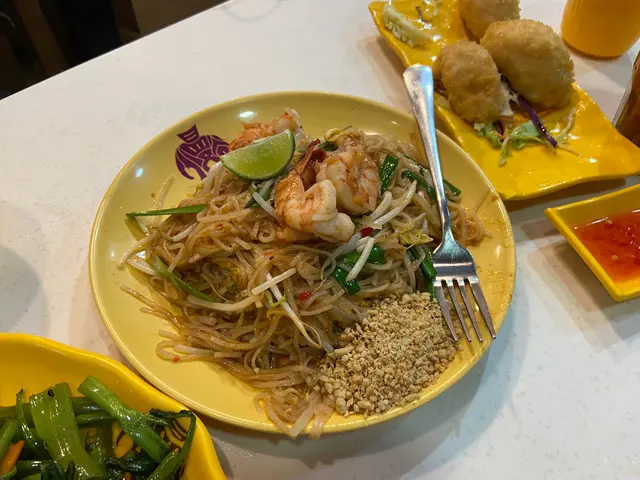 約左舊同事食飯 揀左間方便去既餐廳 呢間餐廳係宋皇臺站隔離 唔洗怕搵唔到間餐廳 真係好容易去 九龍城亦都係出名食泰國菜🇹🇭 所以就揀呢間餐廳試下♡馬拉盞炒芥蘭🥬 $108D菜唔會好鹹 食落好惹味♡泰皇咖喱法包軟殼蟹🥖🦀 $238呢個份量好大 法包吸收左咖喱汁好好味 軟殼蟹既份量多 炸出黎又香又脆♡豬肉碎生菜包🥬 $118我地揀左少辣 呢個真係食泰國菜必點♡細泰式拼盤 $178有春卷、蝦餅、魚餅、雞棗 每件都有2件切開 岩唒同朋友share 點埋甜酸醬更加正♡泰式鮮蝦炒金邊粉 $108金邊粉炒落好乾爽同埋有彈性 呢個幾好食♡芒果沙冰 $42♡椰皇沙冰 $42♡芒果椰汁沙冰 $42♡珍多冰 $42同朋友每人叫左一杯飲品 各有特色 飲埋飲品之後更加滿足😌…查看更多