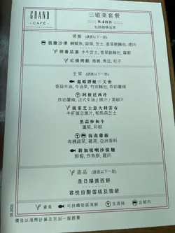 早一個禮拜先訂枱, 原本要分開兩張距離較遠嘅枱坐, reconfirm時安排到兩張枱可以喺隔離🙂👍由於早前食過cafe too好失望, 今次做足準備, 見到各方評價grand cafe選擇多, 果然冇失望由頭盤到主菜, 我覺得選擇都唔少。 龍蝦有凍有熱盤, 蟹腳都算ok, 煎鵝肝攞極都有, 食呢幾樣都回本。 而熱盤嘅片皮鴨同埋海南雞, 不過不失啦。 基本上冇全部嘢食曬, 已經好飽, 最後連屋企人食完推介嘅五穀海鮮粥都食唔落。 但見到粥入面滿佈海鮮,屋企人話鮮甜無比。食飽仲可以叫杯嘢飲, cappuccino同朱古力都唔使加錢, 諗住唔使加錢就唔會特別好飲,但係兩杯都滿分, 不過真係飽到飲唔哂唯甜品水果種類唔多, 拿破崙亦較為遜色。…查看更多