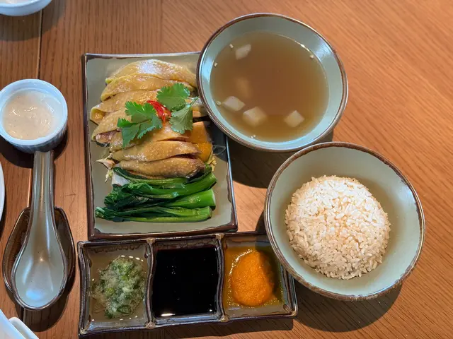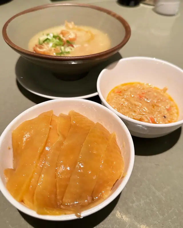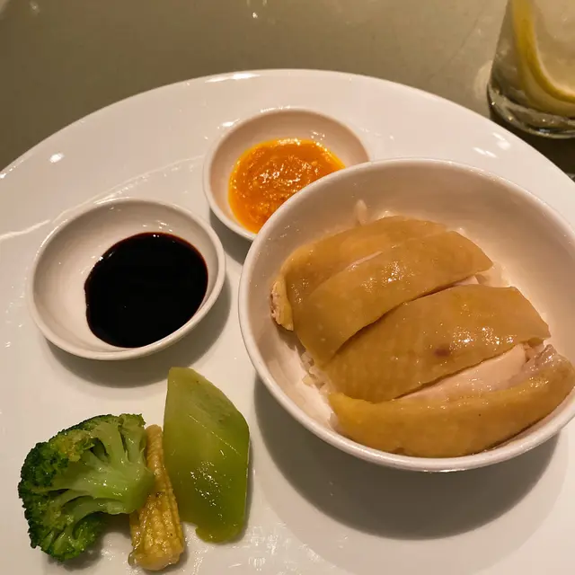 海南雞(例牌)——🐔 雞皮爽口不肥膩,肉質嫩滑 君悅的海南雞以「去骨」為賣點,雞肉確實嫩滑,皮薄肉爽,帶有淡淡雞油香。 油飯——🍚 香氣足,海南雞飯的靈魂——油飯,上桌時香氣撲鼻。配套湯品 & 醬料—🥣 冬瓜雞湯清甜,醬料正宗 隨餐附送的**冬瓜雞湯**清淡鮮甜,能中和油飯的膩感。另外三色醬用上新加坡出品的黑醬油、自家製薑蓉及辣椒醬。醬油濃郁帶甜,薑蓉辛香,辣椒醬微辣開胃。 …查看更多