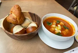 聽人講Grand Hyatt的海南雞飯好出色,見有優惠,即刻訂啦☺️呢間酒店差唔多全部餐廳我都食過,係無去過Cafe. 其他餐廳都有D水準㗎.部份侍應態度,服務都唔錯. 落order我哋點咗一客蘑菇湯,煙三文魚凱撒沙律,主菜係一客有人話係全香港最好食嘅海南雞飯同埋燒西班牙豬鞍. 甜品就嗌咗兩個細嘅蛋糕同埋一盒綠茶雪糕.有一個熱辣辣嘅麵包籃入面有三隻麵包,唔係勁好食但係熱辣辣都唔錯. 蘑菇湯普普通通啦,煙三文魚凱撒沙律個三文魚厚切幾有口感啲菜嘢都新鮮. 你都重頭氣海南雞飯呀😁有一碗湯一, 個雞油飯一個黃辣椒醬一個黑豉油仲有薑蓉,一碟全雞胸. 湯都算寶達清潤嘅,煩一粒粒口感唔錯,雞就冇一陣啫哩喺肉同埋皮中間,但係雞肉係有雞味好嫩滑. 醬汁都唔錯個黃辣椒醬都幾香幾辣. 到我食嘅西班牙豬鞍,上菜時候見到舊豬鞍好似烚熟咁然後放上去個網係咁嘢燒咗幾條坑出嚟. 亦都唔係全熟. 其實豬鞍係有肉味有肉汁但係因為燒得唔好成嚿嘢嘥咗. 飲品就初頭上幫襯佢哋嘅free flow兩個小時. 但啲酒麻麻地, 最後揀咗一杯by glass嘅波爾多紅酒.甜品就係啲小蛋糕揀咗椰子撻同埋綠茶雪糕,正常發揮啦😅如果要畀呢個價錢反而我寧願加多少少錢去佢其他嘅餐廳😅…查看更多