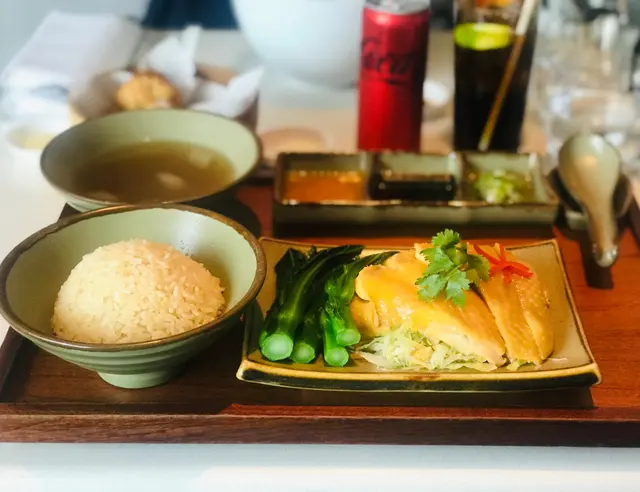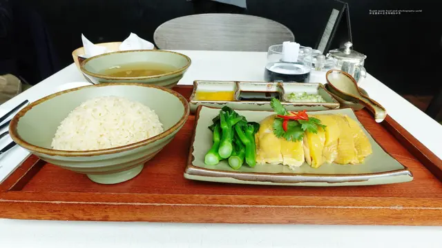 一個人唔知食咩好,又唔想Hea食喎,三月係辛苦月,因為冇紅日,所以想慰勞吓自己辛苦的工作,就一個人去咗Grand Hyatt食海南雞飯啦!呢個海南雞飯,都唔錯呀,睇相都睇到呀!碟雞雞肉嫩滑,又唔會太生有血水,仲有幾條菜心添,好開心呀!個飯就普通啦,唔夠雞油,唔夠香。好彩佢個醬汁好好,三個醬汁都不過不失,本人就最鍾意食薑蔥嗰個醬汁,唔辣㗎,而且仲好香添,同隻雞好襯!呢個餐仲送埋一碗湯,其實真係食唔晒,不過好滿足的一餐!…查看更多