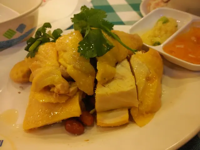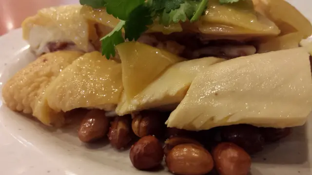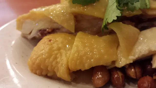 今晚在旺角逛街, 朋友話帶我去試舊式餐廳.現在古老當時興, 當然無問題啦!門口貼了當年的照片,這家餐廳有很多年歷史喎.入座後, 朋友點了81元馬來大餐,我則點了海南雞飯.馳名海南雞飯HKD49 另收加一服務費原來這店的海南雞飯是無油.當年在馬六甲嚐過的海南雞飯都是 ~ 無油呢!就在馬六甲JALAN HANG JEBAT(荷蘭廣場紅色建築對出運河的另一邊)有家經常排長龍的餐廳,食客就是為了著名的海南雞飯而來.裡面的飯都是無油嫁, 比較白身,即是米飯黃黃白白的原色囉!旺角這店的雞飯,又真係頗似馬六甲果間餐廳 ~ 無油!!!(而香港常見海南雞飯是油油的.)慢慢嗒, 可以感覺有種淡淡的清香.連皮的雞件很有光澤,這個與馬六甲的白雪雪雞肉又有不同了!黃澄澄的雞皮下有雞啫喱,雞隻煮熟後要過冷河, 才會形成的皮下啫喱.雞骨仍是紅色, 而肉質都算滑.伴碟花生, 沾上黃色的雞油, 更添鹹香,真的一粒也不能放過!已經忘記飲食要健康了!!!!!!!!!朋友點的馬來大餐, 有4道,當中包括一碟咖哩雞飯.無試到, 唔知味道如何.職員只向朋友提供叉和匙羹, 雞件好大件,與當地馬拉人斬雞方法一樣.馬拉當地餐廳的咖喱雞習慣: