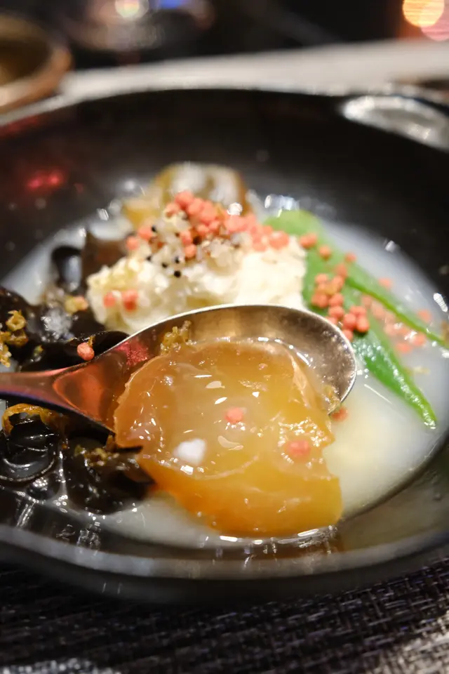 帝京酒店新推出的「獅房發辦.唐詩宴」,將唐詩的詩意融入菜餚,透過碗碟為畫板,美食為媒介,將國學瑰寶化作桌上佳餚,引領您遨遊文學與藝術的世界。區域中式廚藝總監江肇祺師傅運用粵菜技藝,詮釋唐詩之美,每道菜都像是走進詩的世界。頭盤為柚香冷麵.荷燻鯧魚.紅菜酥配上2021 wild olive rose , 有機葡萄酒,帶有士多啤梨奶油、覆盆子,還伴隨著香料的香氣。接著為流金沙.脆鮑魚「勸君莫惜金縷衣,勸君惜取少年時!花開堪折直須折,莫待無花空折枝。」— 杜秋娘 《金縷衣》在都市的忙碌中,我們經常忘記細細品味生活的每一刻,江師傅透過他的菜餚,提醒我們慢下來享受。這道鮑魚被一層金黃色的禪衣醬「穿上」金衣,旁邊搭配脆炸牛蒡片。醬汁是用鹹蛋黃、南瓜泥、牛奶和辣椒蝦米等複雜材料混合而成,帶來豐富的口感。配上山西杏花邨 汾酒青花30年 中國酒米香十足 其酒清香純正,綿甜爽淨,酒體主滿,回味悠長,配上炸物十分相襯。單買此酒也價值不非!花膠元貝鰂魚湯「百頃風潭上,千章夏木清。卑枝低結子,接葉暗巢鶯。鮮鯽銀絲膾,香芹碧澗羹。翻疑柁樓底,晚飯越中行。」— 杜甫 《陪鄭廣文遊何將軍山林十首》(其二)這碗鯽魚湯,鮮美濃郁,讓人彷彿走進了杜甫的詩意山水。經過五小時慢煮的鰂魚,湯中融入了魚的精華,再加上花膠、元貝和白菜增添風味,真是暖心又暖胃!比目魚柿紅汁「涼月如眉掛柳灣,越中山色鏡中看。蘭溪三日桃花雨,半夜鯉魚來上灘。」— 戴叔倫 《蘭溪棹歌》這道比目魚靈感來自它平靜水面上的鏡面姿態。大廚巧妙利用這一點,先用紅椒粉、黑椒和鹽醃製魚肉,再煎至外皮微脆。接著,將魚浸入用柿椒、大蒜、辣椒和番茄熬製的醬汁中,最後撒上糖烤過的檸檬片增添風味。外脆內嫩,鮮美多汁,醬料辛香撲鼻,吃了讓人胃口大開!配上Koonunga Hill Retro Riesling 2022,  taste  Citrus and cant see this label outside 阿拉斯蟹盒.黑金蒜頭「青海長雲暗雪山,孤城遙望玉門關。黃沙百戰穿金甲,不破樓蘭終不還。」— 王昌齡 《從軍行七首》(其二)這道阿拉斯加蟹盒子,內餡融合了蟹肉、鮮蝦、雜菌和蘆筍的鮮美,外層酥皮撒上水牛芝士,烤至金黃。每一口都散發著黑金蒜的濃郁香氣,好像帶你穿越時空,回到了古戰場的激烈與勇猛。品嚐這個菜,不僅是味覺的享受,更像是一次歷史的體驗。雲南鮮牛肝菌茅香雛鴿「春眠不覺曉, 處處聞啼鳥。夜來風雨聲,花落知多少。」— 孟浩然 《春曉》耳熟能詳的詩歌以文字描繪出春天的田間意象,江師傅巧妙地以雛鴿替代詩中的鳥兒,將春日田野帶到了餐桌,呈現出春季獨有的風味。極黑和牛尾「此石巍巍活象牛,埋藏是地數千秋。風吹遍體無毛動,雨滴渾身有汗流。芳草齊眉弗入口,牧童扳角不回頭。自來鼻上無繩索,天地為欄夜不收。」— 李白 《詠石牛》靈感來自詩仙李白少年時曾遊歷四川見到像牛的岩石,因作此詩自喻屹立於天地之間,不懼風雨,自由不受束縛。大廚由此靈感,選用牛尾來比喻人生的堅韌和耐力,搭配薑、蔥、金不換、西芹、甘筍和番茄長時間燉煮,直到肉質柔軟,滋味深入每一絲肌理。佐以蘋果木煙燻,為這道料理增添了一絲獨特的香氣,讓人回味無窮。配上Angove The Medhyk Old Vine Shiraz 2018, Bright, smoky, blackberry with deep fruit concentrated in an elegant style. Well structured with a long finish.海參.秋葵.米湯「紅粒香復軟,綠英滑且肥。饑來止於飽,飽後復何思。」— 白居易 《烹葵》(節錄)白居易性格率直與踏實,儘管曾經因直言而遭貶,他仍在平淡中尋得生活的美味與人生哲理,就如一碗簡單的米湯。這碗米湯,溫潤而富含層次,喝後讓人感到溫馨暖肚。最後,特色甜品抹茶.紅豆.麻糬餅「紅豆生南國,春來發幾枝?願君多采擷,此物最相思。」— 王維 《相思》紅豆自古被稱為「相思豆」,在王維的筆下更是愛情的象徵。每一口紅豆甜點,都像是傳遞著深深的情感,完美的結尾,令人回味無窮。獅房菜館推出的「唐詩宴」,為我帶來了一場用味蕾體驗文學藝術的全新之旅。像我一樣,九道菜優惠價每位 HK$638,wine pairing 價格為每位$288,為您的味蕾增添更多層次…查看更多