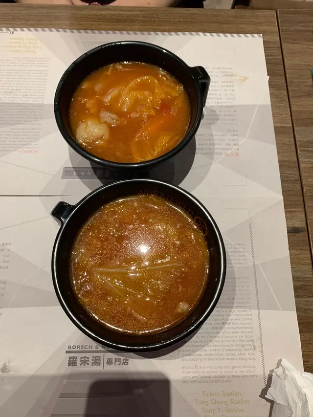 打工仔終於捱到星期五,諗住買件衫獎勵下自己。同太太去到東薈城名店倉買衫,行到咁上下又係晚餐時段,見到間羅宋湯專門店,以為係食西餐入去坐下,估唔到啲食物係茶餐廳嘢食。我叫咗個廚師精選熱奶茶+汁燒豬仔髀豬仔包+海派羅宋湯個羅宋湯的確唔錯,料夠多湯亦都香。豬仔包外皮非常香脆,不過我認為內餡嘅豬仔髀有啲乾,唔夠juicy。太太叫咗個紅酒燴牛肋條,升級咗套餐,要咗碗清雞湯同一杯特飲,清雞湯都值得一讚,不過牛肋條就有啲唔夠淋。…查看更多