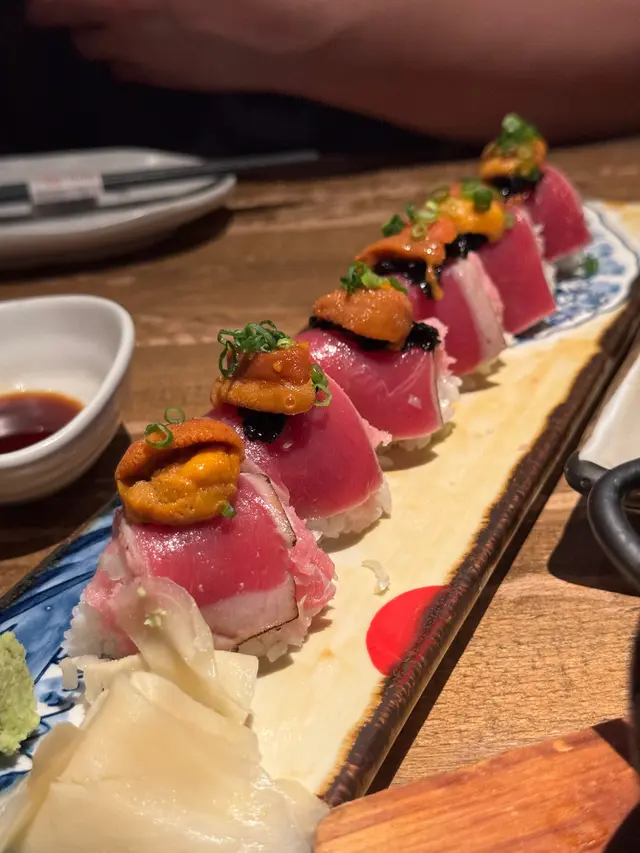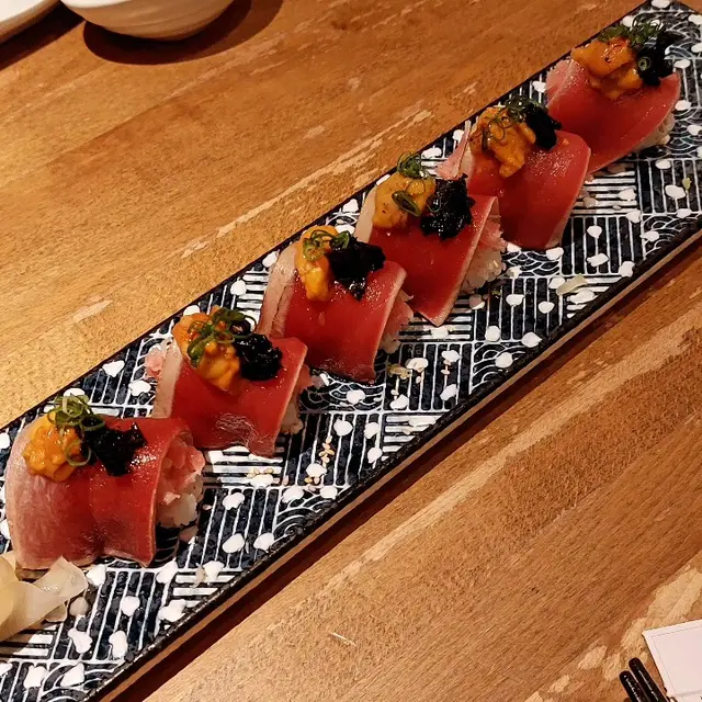 一有4人或以上聚餐,就會唸起黎呢度😆😆上次同朋友黎食,覺得可以無限encore,所以今次同屋企人黎食前菜:白身魚薄切(胡麻風味) $280白身魚薄切透光,可見刀工犀利!連埋中間既爽脆海草一起吃,同加啲醋醬油汁,為今晚豐富美食熱好身😂主菜:海膽吞拿魚壽司 $268海膽新鮮,吞拿魚有油脂香,好正既一個壽司卷!海鮮天婦羅盛合 $248有炸海膽、魷魚、茄子、秋葵、南瓜、蕃薯、海老、炸蝦、帶子、蟹鉗、魚塊超多海鮮種類既天婦羅,脆漿只係薄薄一層,鎖住海鮮既鮮甜味,無流失到海鮮精華。蔬菜天婦羅出色,食到南瓜、蕃薯等蔬菜原味道,無炸過火,點埋蘿蔔蓉天婦羅汁減熱氣,確係得喎!炒雜菜 $78雖然略帶多少少油分,但鮮雜菜仍然保持新鮮,份量算多,食落清脆口感,尤其小菇菌同椰菜好出色。泡菜牛肉石頭鍋飯 $98服務員親自幫我地兜兜個飯,好好服務。比較重口味既石頭鍋飯,有泡菜既少少辣,同炒牛肉好夾,所以餸飯一流!生姜豚肉石頭鍋飯 $98食到飯焦,脆卜卜,比泡菜牛肉鍋飯無咁鹹。屋企人好鍾意,仲「照鏡」添😆😆😆豚肉豆腐鍋 $92日本豆腐滑嘟嘟,所以每次都好喜歡叫佢地既湯鍋,一定有豆腐的。有豚肉就令到個湯底更鮮甜。明太子燒魷魚 $180成隻魷魚筒燒完切圈,一啲都唔韌,係彈牙,仲滿滿魷魚香,魷魚鬚部位超好食,再加埋啲明太子醬喺上面,好好餸酒既一道小吃。芝士厚玉子 $75今次食呢款有芝士餡既厚玉子,口感更creamy更滑口,無得輸!配埋蘿蔔蓉就會口感清爽啲。串燒:雞翼($32@)、雞肉($32@)、牛肉車厘茄($38@)各兩串佢地個燒雞翼真係好好食,每次都沒有令我失望!牛肉車厘茄都好好食,為你用餐既中段開返個胃,非常唔錯。飲品:今晚得阿妹飲梅酒,佢話梅酒易入口,甜甜地,有大冰塊做中和,感覺好爽!我地其他人就飲左蜜桃梳打、柚子梳打,同杯熱既陳年柑橘蜜。杯熱既陳年柑橘蜜真心有驚喜,係真材實料既陳年柑橘,飲落喉嚨好舒服,估唔到熱飲雖然選擇少,但真係用心製作呀!…查看更多
