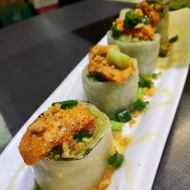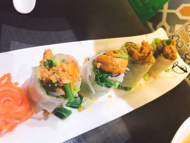 來到旺角廣華街的“越男仔”食晚飯,店鋪空間較細,座位近是開放式的廚房,同店員有互動的接觸,可以傾下計,裝潢都幾特別,牆身掛上漁夫的帽子,貼滿了不少食身相片,相中的美食非常吸引,見到都令人垂涎三尺,店中除了傳統的越南菜之外,還有fusion的越南菜式,小食先選擇了海膽手撕雞檬紙卷$72,海膽大大粒又新鮮,火炙過的海膽味道更是甘香豐腴,卷內有檬粉及手撕雞肉,碟邊的汁醬香甜,再與些青蔥碎及脆口乾蒜片同食,香甜又美味😁第一次食越式的食海南雞飯,雞肉皮薄脆嫩,沒有肥厚皮下脂肪,肉質非常滑溜,再配以黃薑飯伴食,不得不提值得一讚個黃薑飯夠乾爽,黃薑粉味道濃厚有香氣,飯的質感鬆軟,很好吃!最後來一杯青檸梳打($23)作句號,清爽香甜又夠冰凍,飲落微酸醒胃,好refreshing,有助提升食慾😙服務員給我的感覺都熱誠,好親切,食物水準特別又有創意,味道相當不錯,下次會再來