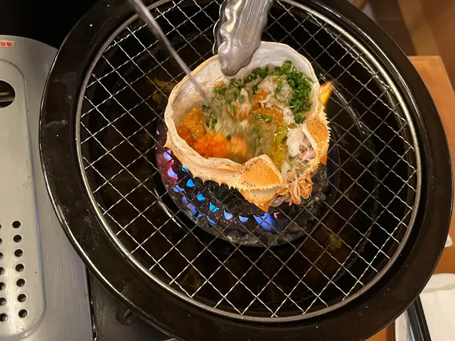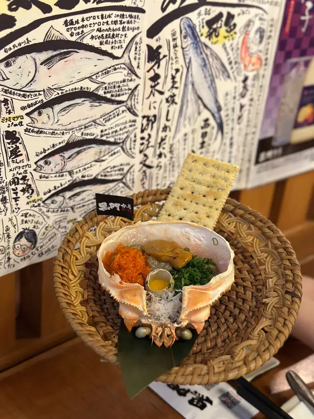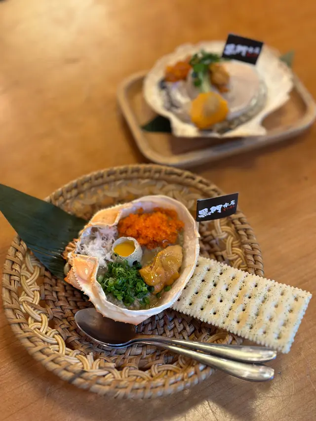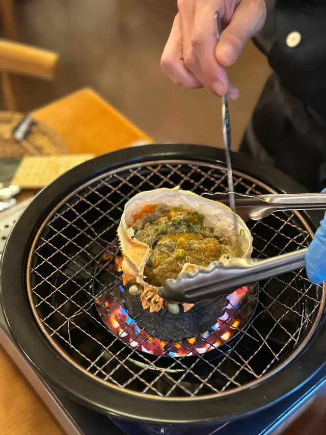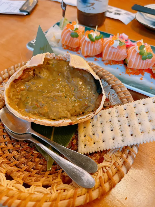 黑門水產店🍱 尖沙咀店之前夜晚路過成日都見到好多人排隊幫襯😆同朋友去到叫左餐廳主打既甲羅燒🦀海膽蟹味噌甲羅燒,黑門令拔絲蟹味噌甲羅燒😋😋兩個都好新鮮,店員姨姨好nice, 幫忙燒好,放枱面