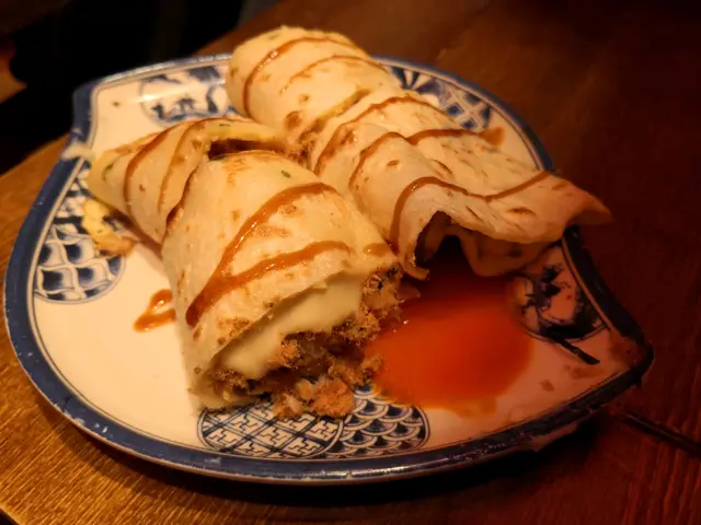 陶大花園九份飽分店嘅裝修好有台灣老街風味,彷彿去一趟台灣旅行🇹🇼 週末好彩早一步到達,下午一點用膳時,外面已經排長龍🐉🐷香酥排骨刀削麪($55) 排骨同麵係分開上,令排骨保持酥脆,排骨味道亦帶點甜,不錯👍🏽朋友點🐥香酥雞扒魯肉飯($48),試咗雞扒都酥脆,味道同酥脆排骨接近,都好味😋🫔海苔肉鬆起司蛋餅($37)略為遜色,同其他台式餐廳嘅蛋餅比較,九份飽嘅蛋餅皮較乾,口感不夠滑,不推介…查看更多