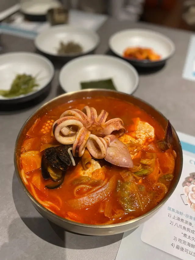 本來我對韓國野一般,亦冇特別喜好鍾意食邊間但係朋友生日想食韓國嘢,就有人介紹咗呢間平凡中帶來不平凡嘅韓國餐廳😌門面係零售店,唔行入去根本就唔會知道係餐廳嚟嘅,而入邊比想像中闊,亦可能唔起眼,所以當日亦未滿座。驚OpenRice訂位,三個或以上訂座人數就已經會送醬油蟹或生拌牛肉,個人就覺得幾抵,因為出邊叫1份都要$100以上。前菜✔️✔️✔️價錢菜無論擺盤定係味道都合格以上,感覺似係一碟餸,不過不失👍🏾醬油蟹✔️✔️✔️✔️✔️贈送嘅菜式,今次就揀咗醬油蟹(一份),唔腥亦都啖啖肉,唔會因為送嘅就將價就貨👍🏾仲配左個紫菜飯🙈超值海鮮嫩豆腐鍋配麵✔️✔️✔️入邊都幾多配料,有蝦同蟹,唔會淨係俾啲急凍海鮮你。不過入邊有麵,建議一上枱就盡快食用,如果唔係淋左就唔好食。獎忠洞韓式滷豬腳✔️✔️✔️入味夠淋,仲配左菜比我地包住食😌👍🏾正常發揮,但未算好驚艷半半炸雞(醬油&芝士)✔️✔️炸雞比我想像中遜色🥲勁乾身,芝士口味只係落左好少芝士粉係面,我地個個食落口都以為原味,要梅真啲粉先知原來芝士從何來。可以留quota食其他🤨海鮮泡菜煎餅✔️✔️✔️✔️同食開既煎餅差唔多,所以唔會太大要求。但佢做到唔多粉,唔係一patpat,煎得夠香。所以我地一致認為佢算好食😋不得不讚既係同事服務好好👍🏾個個都好細心幫我地吱一半蟹落去飯到拌飯食,另一半就比我地就咁食見我地張枱長就自動拎多壺水比我地斟,又會主動收碟,加水,值得加分。因為係朋友既生日,佢地食飯中途打黎問壽星叫咩名。原來有驚喜😆每個同事都出心出力載歌載舞,仲有好多pops影相,唔收切餅費仲要送果盤。第一次去真係會比佢地嚇親,全場爆笑。臨走時oppa經理仲送到我地門口,服務真係好好👍🏾價錢唔算貴,5個女仔食$8xx係飽到食唔晒啲野。食物質素對比起正宗韓國菜就有進步空間,不過一班朋友去食,個氣氛真係無得彈😆…查看更多