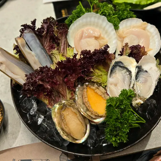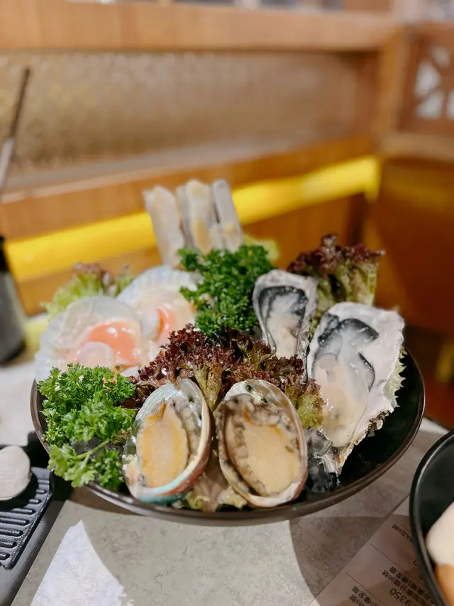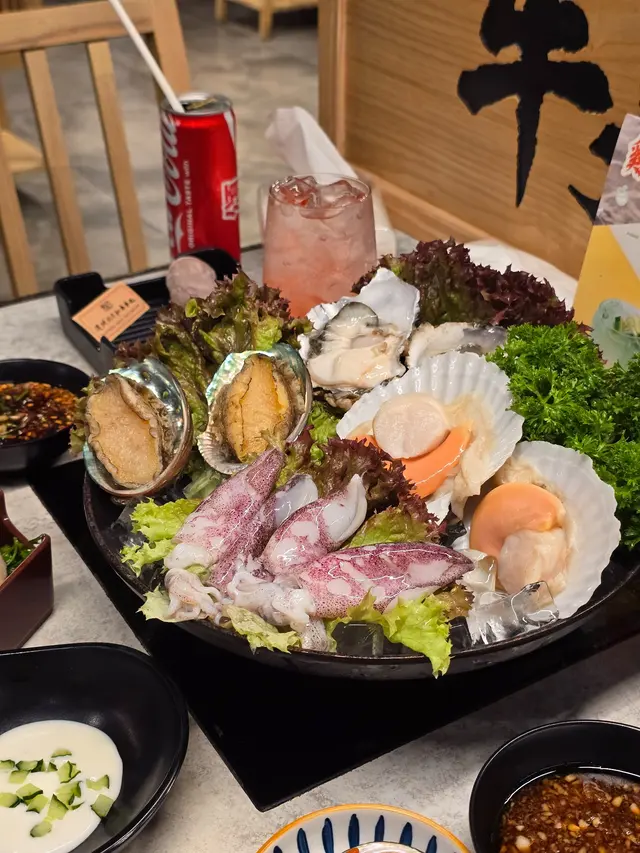 朋友知我大食帶我去食牛大人最新日本黑毛A4和牛套餐,全部上得好快超開始好豐富,果然真食到超飽😆日本黑毛和牛送M9和牛牛丸和海鮮拼盤大大碟,有生蠔鮑魚鱔片,生蠔熟咗都依然好大只脹卜卜鮮甜☺️估唔到牛丸真有傳說中彈彈牛丸感覺,我哋掛住傾計完全忘記湯內和牛,隔了幾分鐘都依然嫩滑無比,牛脂肪分布均勻,入口即溶肥而不膩,牛香味十足🤩*伊比利亞黑毛豬梅肉* 肉質細嫩多汁,味道豐富,口感層次鮮明。 即叫期間限定經典鴛鴦鍋(聰明魷魚沙茶鍋+養生菇菌燉雞鍋)茶鍋香濃帶鮮,搭配養生菇菌燉雞鍋大半只雞在湯內,味道層次豐富,2款既有濃郁也有清淡,食得好自在。 驚喜嘅多款特色鮑魚料理(美乃滋鮑魚酥、柚子燒汁鮑魚、古法醉鮑魚)有多款創新做法,美乃滋鮑魚酥外脆內嫩,柚子燒汁帶清香果味,古法醉鮑魚醉得入味又保留鮮甜。吸引到我仲有懷舊系列菜式-*和牛橘梨豆腐*酸甜配合得好,相當開胃🤤*蝦蝦霸霸脆多士*香脆彈牙而不油膩👏*阿嬤豆乾魚蓉面*感覺好地道,又帶住濃濃嘅傳統風味,仲有豆乾好滋味,魚蓉炒麵味道滿足!而且份量啱啱好好有心思。*烏金墨汁手作腸*香濃又創意,墨魚🦑彈牙。其他仲有三和夜市雞皮卷、海苔鹽酥雞、夜市撈脆薯等懷舊味道同新潮做法結合。 特色甜品芒檸蜜西米爽清新又解膩,蜜桃愛玉冰同伏特加特調嘅港式檸檬茶18+,有果香又有酒香,非常配搭。還有好多台灣直送的蔬菜都好新鮮,餐廳調味醬料非常廣泛。走時候服務員叔叔溫馨提示我食雪糕,我哋九秒九去拿,飽都要食🤣…查看更多
