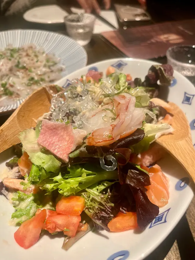 今晚約埋三五知己嚟到諾士佛台食嘢😋 一早bookmarked咗依間高質嘅居酒屋好耐,餐廳設計充滿日式風情,好似一秒就去到日本咁🇯🇵 如果多人嘅話,仲可以坐包廂👀👀🍶【神龍】聽店員介紹嗌咗依枝清酒🍶 酒味帶有甘甜果香💕 適合配搭所有佳餚👍🏻【海鮮沙律】醬汁味道清新,魚生豐富又夠鮮甜,開胃一流。⭐️【揚海苔芝士海膽卷】驚喜之作👀 炸得香脆又唔油膩,海膽同芝士夾埋好creamy,海苔味又夠突出,真係一啖接一啖🤤🤤⭐️【白身魚薄切】擺盤精緻、刺身切得好薄,盡顯師傅刀工‼️【東洋卷】Pancake外皮係即叫即整,餡料豐富,誠意滿滿💯【串燒】特別推薦⭐️【豚肉車厘茄串】⭐️豚肉燒得啱啱好,唔乾!車厘茄爆汁,酸酸甜甜加埋好夾👍🏻 ⭐️【牛舌】⭐️ 切得厚薄適中,燒得香口,咬落有彈性,配埋檸檬汁更加perfect‼️⭐️【汁燒原隻日本魷魚】魷魚爽口,燒得好香,汁甜甜地又有少少焦香‼️【香蔥吞拿魚蓉卷】吞拿魚蓉香口、香蔥提味,壽司飯唔會太硬,整體好食【和牛炒飯】炒得夠鑊氣,飯粒分明,充滿油香,但食到尾都唔會膩😋…查看更多
