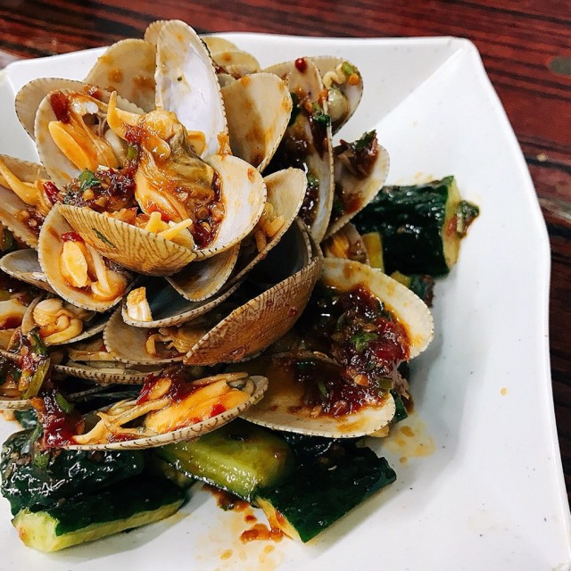 今日同同事過咗嚟食,一行三人叫咗五味餸分別係:涼拌花甲($138):味道同涼拌青瓜差唔多,但係非常大堆頭亦好惹味,值得試下。金莎黃金鮮魷$138):真係估你唔到,以為係魷魚鬚或者係墨魚餅,點知原來係勁厚切嘅魷魚,真係未食過呢種口感,一生人應該試一次,非常香口送酒一流,但係鹹咗少少,加上好大碟,我哋得三個人真係食唔曬。潮州豪爽($138): 呢個真係好好味,我張相已經係食咗一輪㗎啦,我又好遲先記得影相。呢個係必食菜之一。唐芹豬肺:超好味,重胡椒味重啲豬肺又唔會太淋有咬口,亦係我必食之選。豉油王炒粗麵:有鑊氣,味道不妨一試。佢雖然要夾都百幾蚊唔平,不過真係好味又大碟,想食小炒就過嚟試下啦。