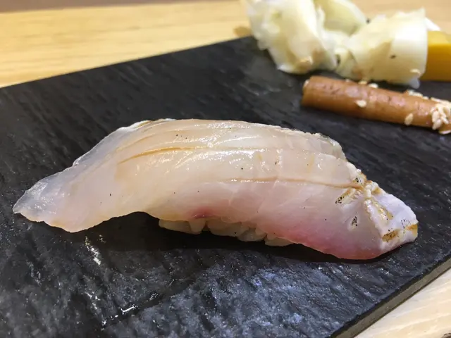 金目鯛肉質嫩滑,味道好鮮味。2. 凡立貝配魚子醬壽司