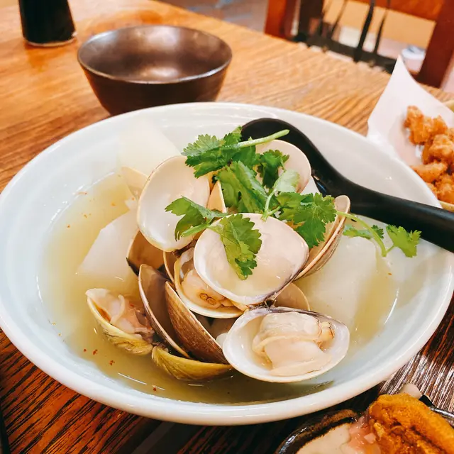 荃灣廣場對面,西鐵行過嚟10分鐘內好易搵,地方乾淨舒服有吧枱,放工嚟食有種日本人放工同朋友去居酒屋傾偈感覺😂🎣特上十貫目 魚生幾新鮮,海膽、三文魚籽、拖羅比到應有嘅高級質素👍🏻,個人鐘意飯調味酸多小小⭐️深海池魚王刺身(薄切)推介肉質細膩有彈性,有齒頰留香的油分,配埋酸汁係2種風味⭐️秋刀魚刺身 而家係食秋刀魚季節,魚肉甘甜無腥味,厚度適中,同池魚一樣,擺盤都好有心機清酒煮蜆 上枱有驚喜,哩個價錢竟然有咁大隻蜆同無沙亦夠新鮮度,清酒味唔會太搶浸住蘿白幾甜鹽燒牛舌芯 & 鹽燒白鱔串一次過滿足食刺身再食啲熱食啱啱好,串燒帶蒜香調味,口感惹味對於日本菜尤其刺身有要求嘅我,餐廳幾有驚喜同高質素,特別係生食類,下次會回訪再試下唔同季節當造食物🤤🤤…查看更多
