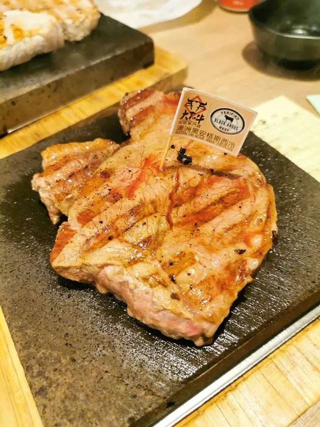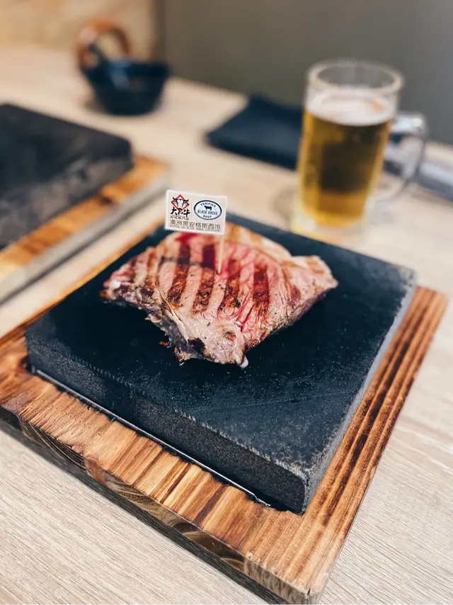 一出九龍灣站,沿天橋行約5分鐘就到。鋪頭座位多,坐得舒服。牛肉款式多,不論係唔同國家,連唔同部位都頗多選擇。加$15可以轉套餐,外面有自助吧,白飯、湯、沙律、醬料任裝。沙律爽脆,白飯鬆軟,包食到飽。推薦麵豉湯,落左頗多雜菜去煲。🔸日本鹿兒島霜降牛柳鐵板餐 $78另加$18,可以多50%肉量,總計$100有找,CP值高。牛肉油脂分使均勻,入口細膩,一拍埋朋友叫既澳洲牛就知分別😂亦會明白點解貴啲。鐵板牛冇得轉套餐,但可以追加多款配料,如:泡菜、粟米、蕃茄等,唔算貴。撈飯食首推加蛋同芝士,拉絲既誘惑,配滑捋捋生蛋,幸福感陪增!🔸澳洲黑安格斯西冷(200g) $138 轉套餐 +$15上台時約三成熟,鐵板超熱,牛肉熟得頗快。西冷係眾多部位中算瘦,唔多脂肪,旁邊有個板筋位,食落肉味濃啲,有嚼勁。🔸炸雞翼 多層卜卜脆,入面嫩口。…查看更多