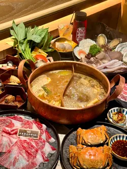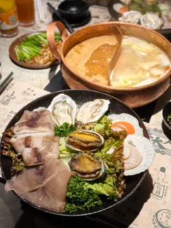 🙋🏻♂️餓底探員去咗旺角調查呢間台式火鍋店,餐廳走木系風格,環境闊落,由台灣師傅主理,主打台灣特色湯鍋及地道食材,供應多款吃到飽套餐,凡惠顧日本黑毛和牛A4+ 套餐,即送江蘇太湖大閘蟹,期間限定至2/12,要食就快喇🥩日本黑毛和牛A4+吃到飽 $458🙋🏻♂️表示套餐可以任食A4+和牛,伊比利亞黑毛豬梅肉,多款口味鮑魚,每位仲贈送海鮮拼盤,澳洲M9和牛牛丸同江蘇太湖大閘蟹一隻🍽️懷舊系列🦐蝦蝦霸霸脆多士|🍐日本和牛橘梨伴豆腐👵🏻阿嬤豆乾魚蓉麵🙋🏻♂️表示將多款懷舊小食經典重現,帶來復刻體驗🦐蝦多士口感香脆,蝦肉鮮甜彈牙🍐香滑豆腐配上香嫩和牛同清甜橘梨,層次豐富👵🏻選用本地老字號永樂粉麵廠嘅素魚茸麵,麵質爽彈,配上鹹香豆乾同秘製蔥油,香氣撲鼻🍲鴛鴦鍋 +$50🦑聰明魷魚沙茶鍋|👵🏻阿嬤養生濃湯鍋🙋🏻♂️表示兩款湯鍋一濃一鮮,令食材更入味更提鮮🦑沙茶醬配上芝麻醬為基底,味道超濃郁,配上魷魚同蜆肉增添鮮味,仲加入脂香嘅五花肉,木魚花同韭菜,令湯鍋層次感更豐富👵🏻以大骨原湯作基底,配以大量新鮮蔬菜,加入多種養生藥膳烹煮成,湯頭集鮮,濃,香,味道清甜,充滿回甘氣息🦀大閘蟹🙋🏻♂️表示套餐每位送江蘇太湖大閘蟹一隻,蟹膏非常澎湃,呈金黃色,味道甘甜鮮味🦐海鮮拼盤🙋🏻♂️表示海鮮拼盤有鮑魚,扇貝,蠔同魷魚多款時令海鮮,鮑魚爽口煙韌,扇貝鮮甜,蠔肉肥美,鮮魚彈牙🍡澳洲M9和牛牛丸🙋🏻♂️表示和牛牛丸口感爽彈,肉汁豐沛,味道鮮香濃郁🥩日本黑毛和牛A4+🙋🏻♂️表示選用日本產黑毛和牛,級別達A4+,油花非常豐富,肉質香軟入口即溶,充滿香濃牛味🦪鮑魚⚪️美乃滋鮑魚酥|🟠柚子燒汁鮑魚|🔴古法醉鮑魚🙋🏻♂️表示鮑魚有3款口味,各具特色⚪️口感酥脆,配上香滑美乃滋🟠口感酥脆,食落有清甜柚子味🔴口感香軟,充滿醇厚酒香🥭芒檸蜜西米爽🍋港式檸檬茶18+ $58🙋🏻♂️表示西米爽以檸蜜同芒果調配成,味道香甜又有粒粒西米,口感豐富,檸茶味道甘香夠地道,加入伏特加增添濃烈辛香,配搭特別📈吃貨指數😋好味度 9/10🔙返啅度 9/10…查看更多