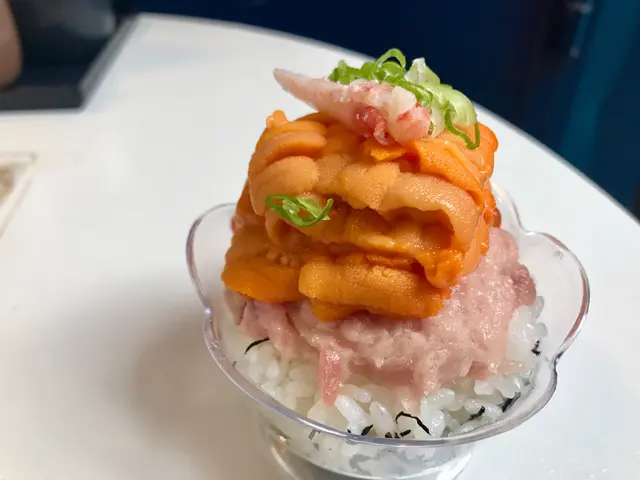 今天全家早上到科學館玩,來到中午時分,入場人數增加了,十分擁擠,而且又有點肚餓,於是到附近來個簡便的快餐。在這街道上,餐廳眾多,看到這家門前有高枱,方便客人馬上享用。而且掛著<日本產米使用>,有點心動。並非戀日情意結,而是自己喜歡<米>這種傳統食物,對腸胃影響較小,也就是母親大人所講的<正氣>食物。細看門前餐牌,有魚生類,熟食類,還有海膽類。海膽又是自己喜歡的食物。真是忍不住要來一杯。激滿海膽杯 門口好大張圖片,應該是這家店主打名菜。圖片表示,用了原板海膽,松葉蟹,北海道帶子,吞拿魚腩及三文魚子。層層叠的海膽,已淋上海膽豉油,把下方的白飯都染成啡色了!海膽,我來也! 一定要閉目來享用,慢慢嗒,慢慢品嚐滿口豐腴滑溜的海膽。消滅海膽後,來到墊底的吞拿魚腩,而帶子就藏在吞拿魚之下呢!然後把杯子內白飯,吞拿魚及三文魚子拌勻,就可每口都有三種口感了。夏威夷三文魚手卷 職員提示:橙色醬汁少少辣。 三文魚配這種醬汁,味道又頗新奇。下方的白飯,對女生來說,份量是剛剛好。鰻魚太卷 手卷,海膽杯都生的,那就來一份熟的鰻魚,即是紫菜包著一團飯,菜,甜蛋跟鰻魚。不過,豆丁之父一定要有飯落肚,才可飽肚。這個太卷肯定能滿足豆丁之父。脆皮腸太卷 粉紅色的香腸,吸引著豆丁,加上是配料全都是熟的,既然豆丁喜歡,就讓豆丁樂一下吧! 忌廉芝士蟹柳玉子燒 這個又是豆丁喜歡的食物~忌廉芝士,蟹柳,玉子燒。這個日式蛋卷,即點即制,熱辣辣,隔著膠盒也感到玉子燒的熱力。多層蛋皮包著半溶化的忌廉芝士及蟹柳,是花心机的款式。家中没有這個玉子燒方形廚具,煮不到這種多層結構的煎蛋。總之整個食材又是全熟,可以放心給豆丁食用。其實自己也很喜歡鬆軟,熱辣辣的玉子燒! 嚐過這個快捷方便的午餐,要帶豆丁去另一邊的公園放電了。…查看更多