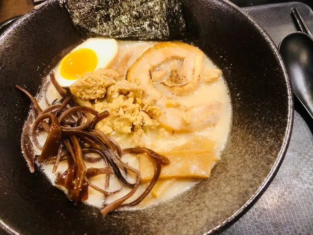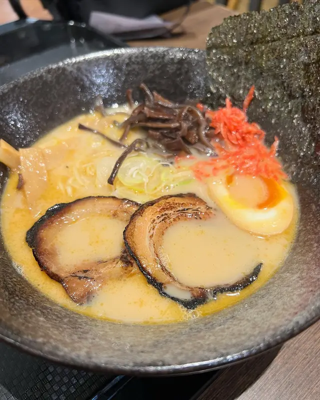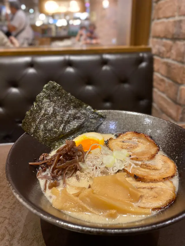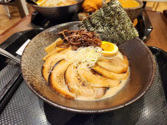 去奧海城睇戲,最方便就是到大食代Food court搵食,今次揀了好像都幾多人光顧的高橋沾麵製作所。主打是沾麵類,而我卻點了碗濃厚豚骨叉燒拉麵🍜濃厚豚骨叉燒拉麵,配料有炙燒叉燒、紫菜、筍、木耳及溏心蛋。現在吃一碗日式拉麵,動輒八九十元或以上,六十多元一碗已買少見少,因此,這碗拉麵的配料也沒有鋪得滿滿的那麼誇張。湯底的豬骨味香而不油膩,拉麵軟硬度適中,爽滑但不算好彈牙。溏心蛋入味,蛋黃亦夠溏心。半肥瘦叉燒充滿炙燒香氣,軟稔易咬!$63一碗的價錢而言,這樣的質素都算對得住價錢。…查看更多
