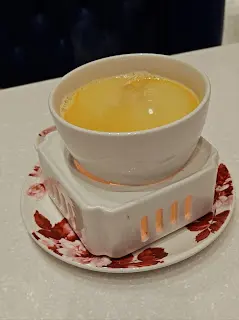 飯店佈置懷舊,充滿廣東風情,有多少去了廣州的感覺,亮點是價錢親民,尤其是套餐優惠。更有紫砂茶壺及茶隔的配備,真的恍如北上了!環境寬敞,運作暢順。茶錢每位 $16真心推薦[濃湯大碗翅餐 $288]燭火保溫的濃湯翅一大碗,湯頭奶白黏稠,一梳翅羣,喝得滿足!除此之外,套餐包括三款小食,分別有[涼拌青瓜、七味豆腐、砂薑豬手],整體水準唔錯,尤其豬手皮爽肉結實。兩款餸一個飯,[濃湯紫菜浸菜苗]、[纸包骨拼石本酒焗蠔]及[脆鳝飯],若然胃口不大,足夠兩人分享。最後還有甜品 [桂花椰汁糕],爽滑涼快。另一必吃之選是[紅燒乳鴿 $68]正在推廣買一送一,即是$68已有兩隻,堂前替客人剪開,一分為四比較易食,若然想原汁原味,用手拿着原隻咬更有風味。皮脆肉嫩,燒得好。心思細意,配上四杯迷你百香果汁,作為解肉膩之用,值得稱讚。亦看中了「海陸鮮享」的[花椒盤龍東星班 $198]首先賣相得分,此外花椒的調味做得出色,的確有點辣,正好為東升斑提味,份量十足,啖啖肉。今次點了這三款皆非常滿意,有這樣的環境及價錢,對於我並非超級喜歡北上消費的人更加覺得無需舟車勞頓!…查看更多