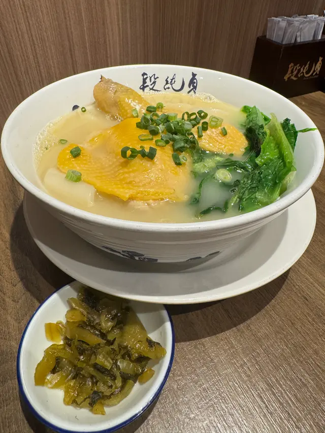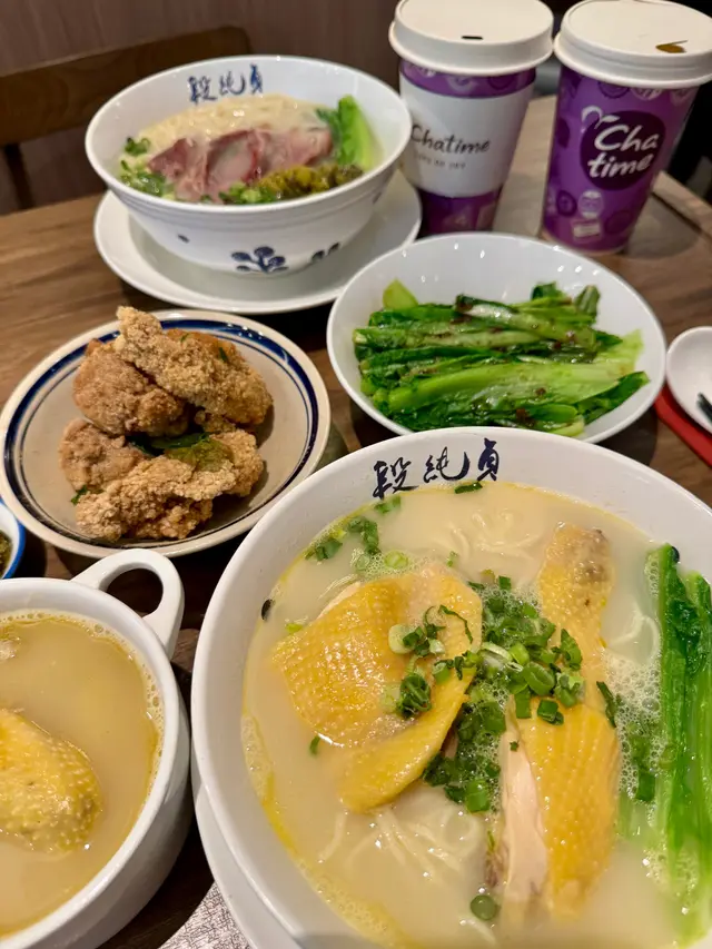終於食到來自台灣的品牌段純貞牛肉麵🍜店內裝潢充滿古式風格,座位舒適🍹配上Chatime茶飲,餐點與飲品都令人期待🐔鹽酥雞 $48鹽酥雞大件足料表層口感酥脆,咬落肉質實左,充滿鹹香🥩招牌紅燒腱心牛肉麵(微辣)手工麵 $86段純貞的招牌之選,湯底香醇牛腱心色澤紅潤,口感極之軟淋,入口即化食出層層牛肉纖維,滿帶牛香🤤手工麵寬闊粗大,口感彈牙充滿嚼勁👍🏻🍗濃湯燉雞麵(細麵) $88雞湯十分濃香,啖啖燉雞精華,感覺滋補🥰雞肉口感滑嫩,味道鮮美,還附有一隻雞髀細麵口感柔順,伴隨濃湯入口,令人滿足❤️🌶️麻辣鴨血冬粉(微辣) $88辛辣風味引人垂涎,食落香口,辣度適中🔥冬粉細滑,掛上麻辣湯汁,味道一流鴨血片片厚度十足,爽滑滿分🥬蒜醬青菜(西生菜) $48🍹黑糖珍珠鮮奶凍飲 $42面層鮮奶混合底層黑糖珍珠,口感柔滑而甜美黑糖珍珠入口煙韌,整體味道有層次🍹手打鮮檸鳳梨茉莉綠茶凍飲 $38鳳梨果味清甜,搭上茉莉花茶香氣,清新而淡雅底部有粒粒鳳梨果肉,鮮味而足料❤️總結而言,餐點用料十足、烹調得恰到好處,值得一嚐最後配上一杯特色茶飲,令用餐體驗更為圓滿😋…查看更多