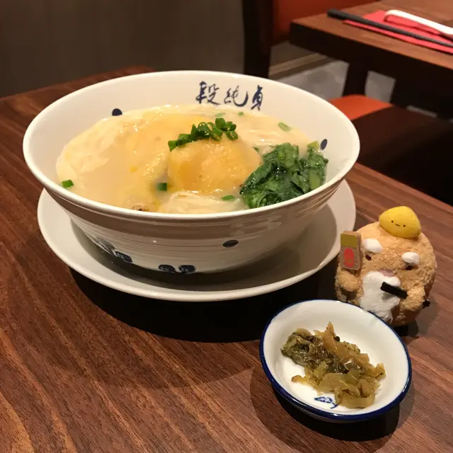 濃湯燉雞麵奶白色湯底濃郁鮮甜,手工麵條彈牙