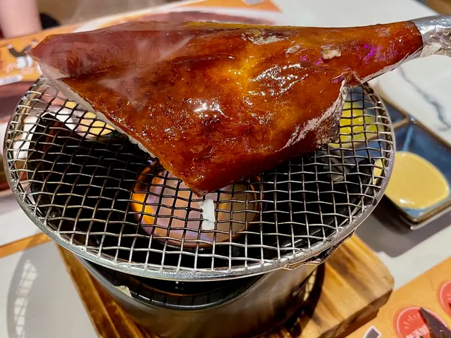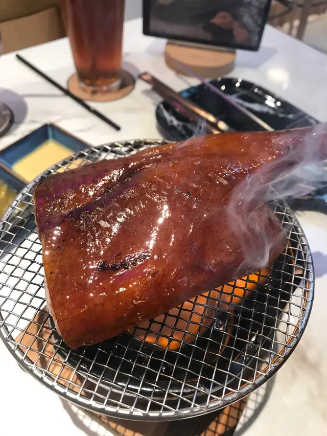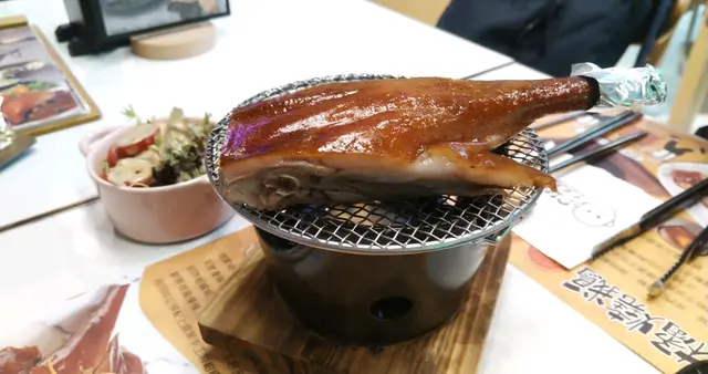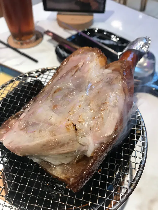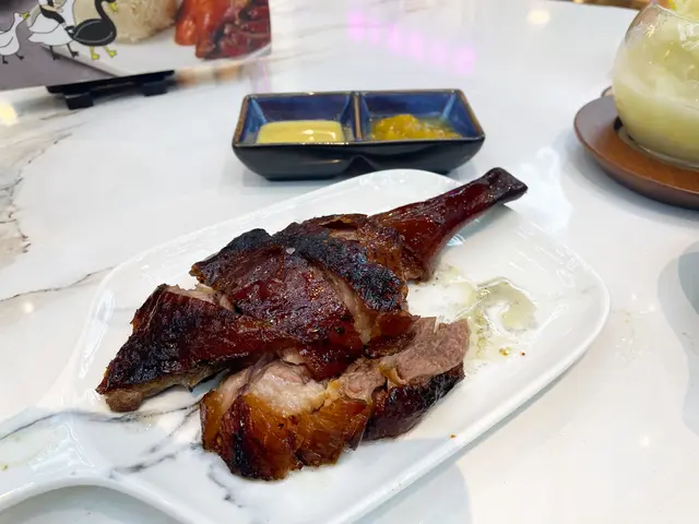 去海之戀商場購物後看到這間新開燒味店茶餐廳-鼎家喜筷,是鼎爺,李家鼎先生開設的餐廳,電影上見他刀法如神,相信他開的餐廳應該也不會差。餐牌選擇非常多,主打燒味,另外有小食,甜品,台式飲品都有,相信對象是年輕人。火焰原隻燒鵝髀原個火爐上的,要眼明快手去燒,轉眼已經聞到燒鵝香味。皮脆,肉汁豐盛,鵝香撲鼻,但比較肥,吃得多會覺得油膩,幸好有鮮橙製成的醬汁中和一下。原條靚叉飯叉燒肉質好淋,非常軟熟,雖然偏瘦卻不會粗榎,如果燒得有少少燶邊更香。麻辣蒜香涼拌手撕貴妃雞撈丁撈丁微辣,口感彈牙,加上手撕貴妃雞,青瓜絲籮蔔絲梨絲,帶點清甜,中和了麻辣的味道。套餐有沙律和飲品 特飲加$28可以試到不少的台式飲品。我點了水果茶,用火去保持溫度,茶味夠濃,水果味也不錯。 另外有最近熱門的芝士奶蓋,有3款茶底,但當我問店員甚麼是田園芳香,他竟然回覆是田園芳香味道,令人無言。最後我點了這款田園芳香,我個人覺得是偏淡的茶,有點像綠茶,感覺清新。店員的服務態度有待改善,不會為你推介食物,又不會提點你,你問問題也是沒有用心回應,除了當中一位年紀較大的男士面帶笑容外,其他人都是黑口黑面的。…查看更多