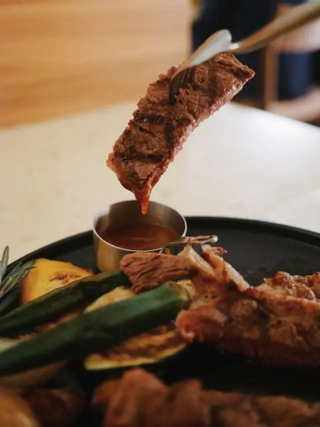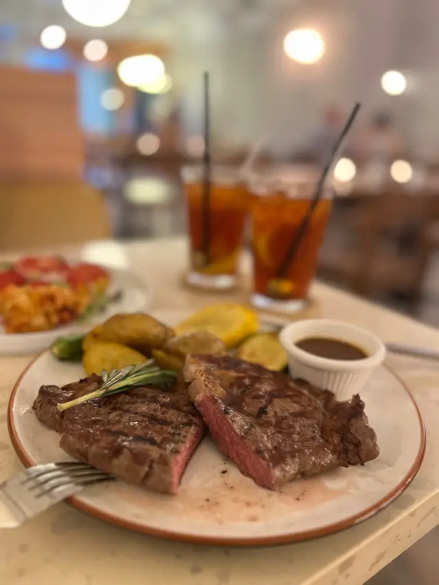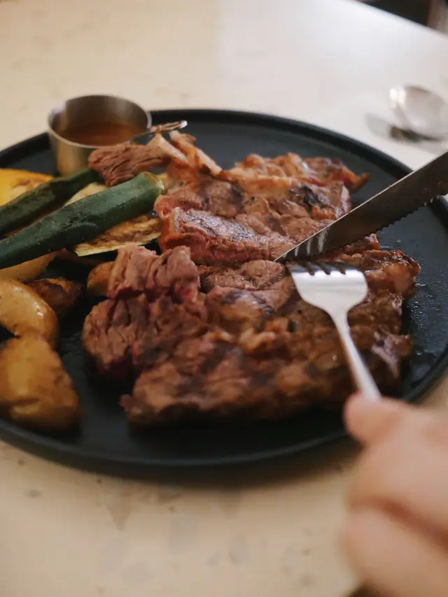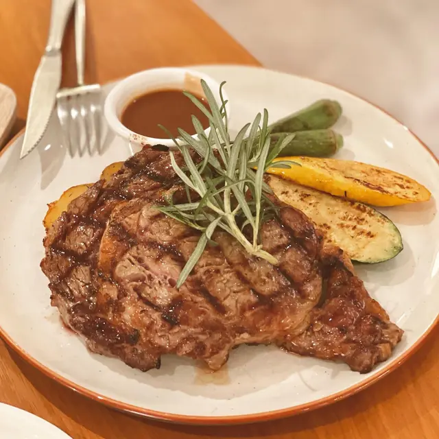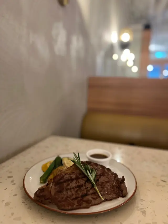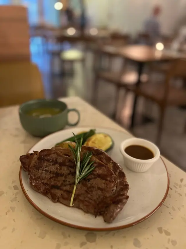鄰近佐敦MTR的文青西餐廳,木系裝潢加上柔和微暗的燈光帶來悠閑舒適的感覺。平日Dinner Time也差不多8成Full,但空間充足,座位尚算舒適,食物質素也很不錯。脆炸魷魚伴墨魚汁沙律醬 $98Fried Calamari w/ Squid Ink Mayo即叫即炸,熱辣辣很燙口。炸皮薄脆,也不太油膩。墨黑色的墨魚汁沙律醬很有驚喜,除了顏色特別,還帶一點點鹹香,比起一般的沙律醬的味道更有層次。炭燒美國安格斯肉眼 $368Char-Grilled US Angus Rib Eye大大件Rib Eye,比預期中份量更多,需要2人Share!炭烤味和Medium熟度都交足貨,肉眼本身就很高質,軟嫩、牛味濃郁,加上肋骨間的小脂肪所帶來的油香,食肉獸表示歡喜滿足。伴碟的烤薯和蔬菜吸盡牛扒的肉汁和油香也不能錯過。羅勒青醬野菌粗管意粉 $148Rigatoni w/ Wild Mushrooms in Basil Pesto Sauce吃完Meaty的Rib Eye,來個無肉Menu試試青醬意粉。粗管意粉比想像中厚實、有口感,羅勒青醬Creamy掛汁,加上有酸酸甜甜的小蕃茄,整體簡單而不失美味。自家製巴斯克芝士蛋糕 $78Homemade Basque Burnt Cheese Cake (Whole Cake)倆口子分享原個小型Basque Cheese Cake,必須一提,比坊間的Cheese Cake專門店值得更高分!蛋糕裡面軟滑Creamy,紮實度和軟心度是近期吃過數一數二的剛好,芝士味濃郁、不膩,大推!…查看更多