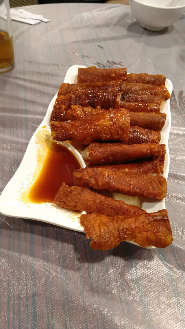 個龍蝦見隔籬兩枱都嗌,搵勻個餐牌都見唔有,唯有問吓店員,原來係新菜式叫「飛天龍蝦」,轉咗兩斤鬆少少嘅花龍,5個人食啱啱好,個龍蝦好爽,個麵好脆,加埋個汁啱啱好🦞估唔到個皮蛋係流心👍🏼👍🏼另外仲嗌咗Wasabi魷魚圈,上到枱嘅時候見佢白色好似冇乜料到,一方入口啲辣轟晒出嚟🥵🥵原本想試着火嗰隻雞,怕食唔晒,唯有嗌半隻炸子雞試吓🔥🐓可惜冇瀨尿蝦同元貝除開每人都400都唔使算幾抵食,一定平過去西貢、鯉魚門…查看更多