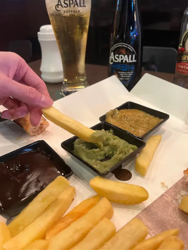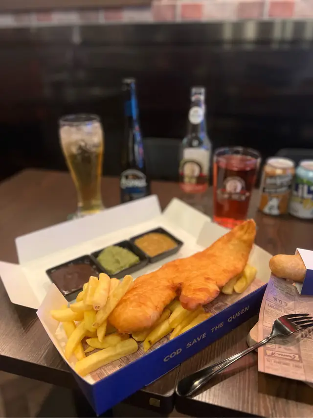 聖誕假期同朋友喺銅鑼灣食飯,我哋行經耀華街見到有間好好節日氣氛嘅餐廳🎄,叫「The Chippy」。再望餐牌,發現原來係食英式炸魚薯條Fish & Chips。店舖木系嘅裝潢滿有英倫風格🇬🇧,四周圍貼滿海報,整體感覺舒服又好Chill。同時,門口開得大,冬天有生風吹入嚟好通爽,唔焗促。餐廳主打英式食物,入口唔少英國地道品牌嘅食品同飲品。雖然部份產品唔係自家製作,但至少專賣呢類菜式嘅餐廳喺香港唔多🇭🇰,幾有特色。炸鱈魚薯條12oz(招牌)($198),你無睇錯,🐟炸魚超大條,我無磅喺手所以佢足唔足12安士我就唔知,但就肯定長超過12吋,同我手臂有得揮💪。炸皮記得要襯熱食🔥,佢算薄身,食落微微脆,唔油膩。炸魚用上鱈魚Cod Fish,魚肉肉質幾有彈性,而且亦算嫩滑,最重要係夠厚肉,大大啖肉,咁先至有滿足感。🍟搭配嘅係手切粗薯塊,薯肉好綿,份量多到食唔晒。炸魚薯條跟配三色醬🚦,左至右分別係青豆醬Mushy Peas、咖哩醬Curry Sauce同牛肉醬Gravy Sauce。三款之中咖哩最惹味,一啲都唔辣,似日式溝印度風🥘。我平日唔食青豆,不過變咗蓉又唔錯喎,就咁食好過沾魚食。牛肉醬貌似紅豆醬,但味道比想像中淡。炸熱狗腸(12吋)($48),珍寶香腸好大條🌭,外層同樣包住炸漿,質感稍為硬啲,但都脆。入面嘅香腸係豬肉腸🐷,口感彈牙,富鹹香。炸熱狗腸用紙皮包住,食用方便。雞肉磨菇批($78),餐廳選用英國牌子嘅肉批Pukka Pie🥧。肉批焗起鬆化挺身,酥皮具牛油香,切開後肉餡一湧而出,入面係忌廉磨菇雞肉🐔,食落都OK,幾Creamy,而且係似曾熟悉嘅味道(罐頭湯?)。呢度提供多種醃菜Pickles,全部來自英國。醃菜配炸物一流,因為可解膩🤤。我要咗小黃瓜Gherkin($15),一條都切到成十幾片,口感爽脆多汁,酸酸哋帶少少甜,好開胃,又易入口🥒。飲品方面,店員推介試吓英國汽水🥤,齋睇餐牌我完全無概念係乜味,有見及此,佢好好人拎晒出嚟俾我揀🤣。我哋要咗BEN SHAWS嘅Bitter Shandy以及Dandelion & Burdock,每罐$55,有啲貴🙈,但當試新嘢。前者有啲似檸茶溝啤酒🍻,有0.5%酒精;而另一款味道幾獨特,係蒲公英加牛蒡味,但我飲唔出,哈哈。啱啱過咗世界杯🏆⚽️,再一次見到1966年英格蘭嘅勝利海報,就諗起暫時仲未Coming Home……🏴。另外,仲有老闆嘅珍藏:碧咸親筆簽名波衫。總括嚟講,難得喺香港食到英式正宗炸魚薯條,味道不俗,情懷十足👍,感覺堅係有啲似喺英國嘅酒吧,過咗一個愉快嘅晚上。…查看更多