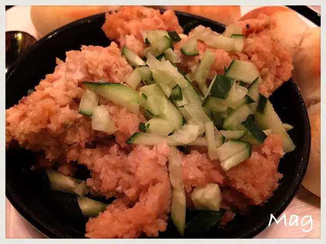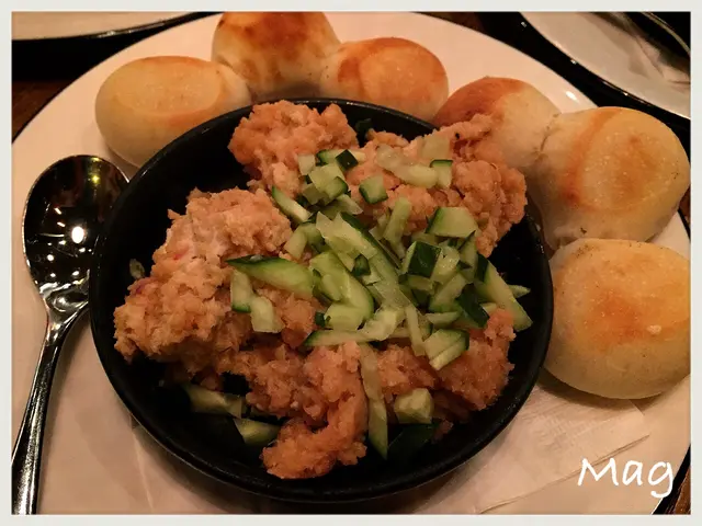 煙三文魚青瓜沾醬, 食落好鮮, 我自己就覺得好似食到幾重味道咁, 有食到三文魚香, 亦食到青瓜既清淡味,不過有少少比較偏咸, 所以我就一啖啖跟麵包一齊食! 非常美味!!! 最後上既係