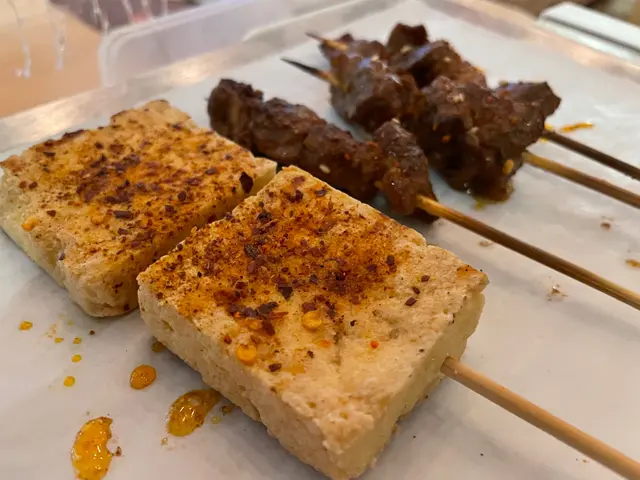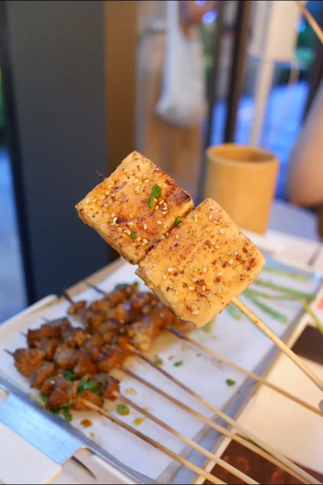 4串起跳,細細粒臭豆腐,食落帶少少臭豆腐獨特嘅味道,外脆燒到夠乾脆。