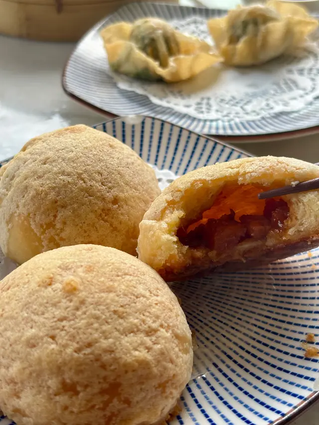 餃皮薄得嚟唔會爛,瑤柱鮮味十足,香茜味啱啱好,唔會太濃,啱晒鍾意清新口味嘅人。【焗叉燒包】
