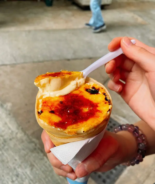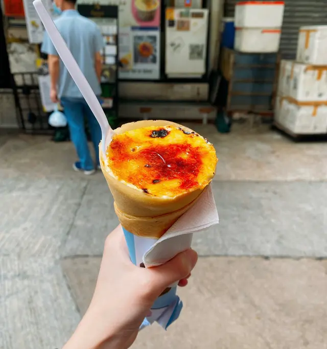 講起港島掃街大家會諗起邊度呢除咗太安樓最經常去應該係筲箕灣東大街東大街真係超旺場除咗買外賣嘅人都不乏掃街嘅人們🤫見到呢間想試好耐嘅班戟店難得嚟到就梗係要支持下💛班戟真係超多款選擇 有鹹有甜焦糖燉蛋雪糕班戟經常係ig見到嘅焦糖燉蛋班戟終於見到本人😆成個焦糖燉蛋放係班戟上好搞笑😆仲有個脆脆焦糖面布丁滑溜溜🍮有蛋香個班戟皮亦都好柔軟好煙韌下一層就係雪糕有幾隻味道可以選擇今次就揀咗雲呢拿味雪糕仲好冰凍🤤同焦糖燉蛋個味好夾!不過味道就普普通通啦最底仲有啲Cream 幾滑身成個班戟真係好豐富夠哂肥仔🥰…查看更多
