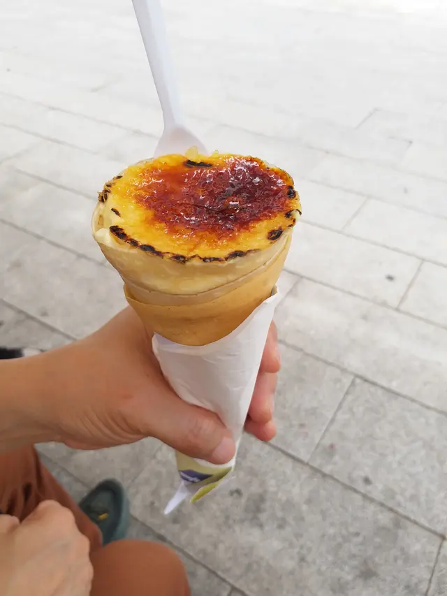 20-5-2023 (Sat)晏晝,同老公食完低調高手嘅嘢食後,就喺喥買消暑甜品食,我用$35.00要焦糖燉蛋雪糕班戟,雪糕要豆腐味.等咗5分鐘就整好,焦糖脆就一定,燉蛋又甜又滑,豆腐味雪糕好夠味,班戟軟腍.一次過食到咁多種口感,而整體亦唔算太甜,幾特別.下次可以試其他.評分係:味道 : 5    環境: 3     服務: 4     衛生: 3    抵食:  2.8   smile…查看更多