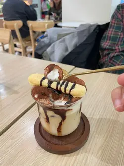 粉嶺中心這間半開放的cafe,雖然常常經過,但今次終於可以試一試,很多煮食都可以轉做套餐,價錢亦親民。【自家製蜜燒黑毛豬滑蛋飯】以蜜燒黑毛豬的濃郁香氣為主角,肉質鮮嫩多汁,甜而不膩,搭配滑蛋的柔嫩與米飯的香氣,營造出溫暖的風味,一試難忘。【黑松露蘑菇和牛漢堡】和牛肉餡多汁鮮嫩,黑松露與蘑菇的濃郁香氣提升了整體層次感,麵包酥軟但不失嚼勁,配搭芝士好惹味。【泡沫咖啡】帶來了輕盈而順滑的口感,泡沫細膩如雲,咖啡香濃郁。【提拉米蘇咖啡】融合了提拉米蘇的香甜與咖啡的濃郁,層次分明且不過於甜膩。【焦糖芝士蛋糕】以焦糖的微苦香氣與芝士的濃郁滑順為特色,口感結實,甜而不膩。…查看更多