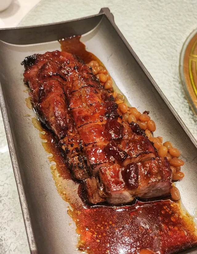 焦糖黑毛豬叉燒 $228100分嘅叉燒呀🥹,一定要嗌!黃金肥瘦比例,外皮厚切燶邊,香甜甘脆,一定要試。砂鍋澳洲M9和牛菌香醬炒飯 $238呢個炒飯又不得了,炒到好乾身,粒粒分明,和牛油份高,滲透去每一粒飯。係砂鍋焗多陣重有飯焦添。蝦乾啫啫水東芥菜$188炒得乾身,蝦乾好香,芥菜入哂味,好食~麻辣海蜇花$168香煎蓮藕餅$120雞蛋焗魚腸$198所有嘢食都好高水準,除咗蓮藕餅,嫌佢太少蓮藕 一塊蓮藕餅得5%係蓮藕其他都係肉。…查看更多