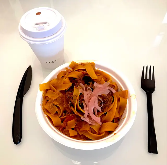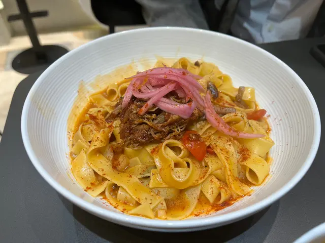 -{黃埔salon咖啡店🥙}一直係hall嘅對面😂終於有機會試😆🤤壽喜燒牛肉意粉🤤 ($118)上菜就見到隻生蛋同埋木魚嘅配搭好吸引🥳撈埋汁食有啲大阪燒嘅風味 寬條麵都掛汁😎而且牛肉粒唔韌!大概有8至10粒左右☺️👖褲評: 7.8/10🤤煙燻燒烤手撕豬肉意粉🤤 ($98)肉嘅份量好多😋有好重嘅ribs燒烤醬味 有啲肉嘅部分都做倒焦香味🤟fusion得黎好夾😝但友人話唔鐘意個醬太酸😌👖褲評: 7.6/10🤤忌廉芝士配自家製糖漬士多啤梨窩夫🤤 ($78)有兩大塊窩夫!配搭較單調 窩夫脆但冇乜蛋香🤨雖然有忌廉芝士但係唔會好吊倒味 普通啦~👖褲評: 6/10Pasta兩個都唔錯!店員同環境都幾好🤓室外仲有位係pet-friendly😙性價比: 7.5/10服務: 8.5/10環境: 8/10🚩Duet Cuts & Cups🚩地址:紅磡黃埔天地百寶坊(第3期)地下G28號舖 #fuudjai #fuudjai西餐 #fuudjai黃埔 #fuudjai紅磡…查看更多