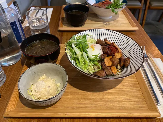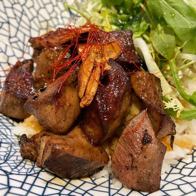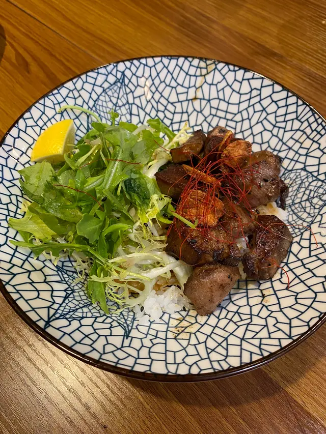 熟成厚切牛舌丼「熟成」嘅意思真係講緊佢會全部熟晒,就唔係tender pink 嗰種七成或者五成熟。不過,咁樣就唔代表佢會好un or 癡牙。基本上,除咗有一舊肥膏連埋筋腱位之外,九成嘅牛舌都係彈牙,可以簡單輕易地咬開。而且每粒牛舌都燒得咁上下,有金黃色香脆嘅顏色。有啲會特別彈牙,好有𡁻口😛。 黑毛和牛牛扒丼青森溫泉玉子食完第一個無玉子蛋版本,就會明白:原來隻溫泉蛋其中一個用途,係撈埋火箭菜一齊食,如果唔係就會比較似心食草😂 因為佢嘅份量都唔少,確保到有足夠嘅纖維😂 兩碗嘅牛丼飯都有確切嘅炸蒜片,為牛肉加添左風味😍👍🏻 雖然講係和牛牛扒,慳始終華都貴,所以其實係薄切嘅🥲 但係都有大概九到十塊,每塊直徑都有返咁上下,都唔會令人太失望👍🏻環境風格如果你想喺香港可以偽裝日本旅行,呢間餐廳都幾值得嚟自我安慰一下😂 餐牌係日文,服務態度都有日本旅行咁好,當然要加一服務費啦。😏 露天雅座。我去嘅時候,大部份顧客都係坐室內,但其實室外嘅陽光,即使正午12點都唔會直接照住,所以如果天氣好,就可以喺出邊享受到。…查看更多