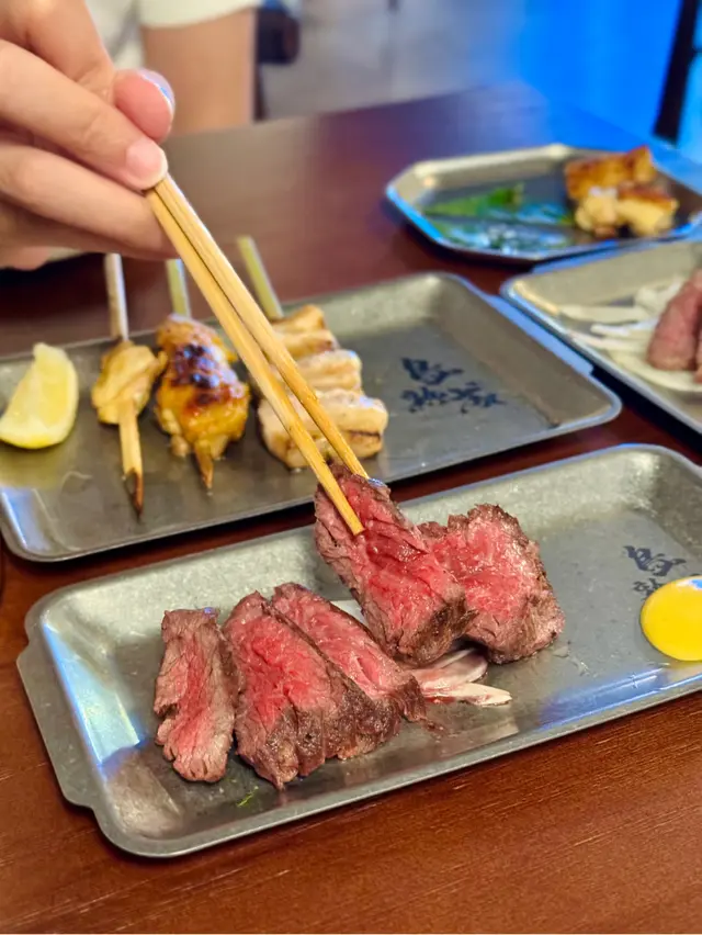 銅鑼灣最近開左間燒鳥店 可以一嚐多款部位 更有熟成食材同三黃雞提供!😍一入門口已經見到佢地個熟成櫃餐廳有吧枱可以望住師傅製作串燒 亦有多人餐桌區坐低無耐 首先有一人一隻鴿翼做welcome food🕊️❤︎熟成特上鴿皇胸腿肉 ($58)外皮燒到焦香 內裡肉質軟嫩 經熟成後肉味香濃咬落啖啖肉 超級juicy🤤果然係佢地嘅招牌!必點!❤️❤︎日本雞皮 ($24)呢個燒得恰到好處 外層脆得黎 入面仲有少少咬口 正!😚❤︎三黃雞腿肉4件 ($68)❤︎三黃雞中翼 ($22)❤︎三黃雞腿跟腱 ($32)3款三黃雞都燒得唔錯 雞皮都係燒到金黃色推薦雞腿肉 加埋紫蘇葉一齊食好正 又香又解膩😌❤︎本地活豬玻璃肉 ($32)豬肉肥瘦相間 肉味同脂香平衡得好好 好味到叫多串黎jap🤭❤︎日本產鰻白燒 ($48)外層燒到酥脆 內裡嘅鰻魚肉仲係軟棉棉 落埋山椒粉食更好味👍🏻❤︎味淋河豚魚乾 ($58)本身expect係又硬又韌 好考牙力嗰款魚乾 點知呢度嘅河豚魚乾入味之餘 外層微微焦脆內軟腍 完全唔乾唔韌🥺好有驚喜!配酒一流!🫶🏻❤︎熟成黑安格斯封門柳 ($68)❤︎乾咖哩牛配法國麵包 ($48)❤︎特上厚切牛舌芯 ($68)❤︎自家製月見免治雞肉棒 ($42)❤︎新鮮鳳梨 ($18)❤︎海鹽柚子酒soda ($55)清新解渴 我中意🥴❤︎Sapporo生啤酒 ($55) 食串燒又點少得啤酒 依家仲做緊買一送一優惠添🍻除左上面幾款 其他食物嘅質素都好唔錯👍🏻不過可能當晚客人較多 上菜速度略嫌慢左啲當晚坐低無耐就已經全場full哂 大家有興趣記得book定位啦😉(•̀ᴗ•́)و…查看更多
