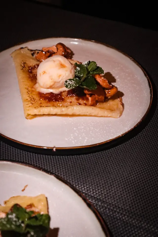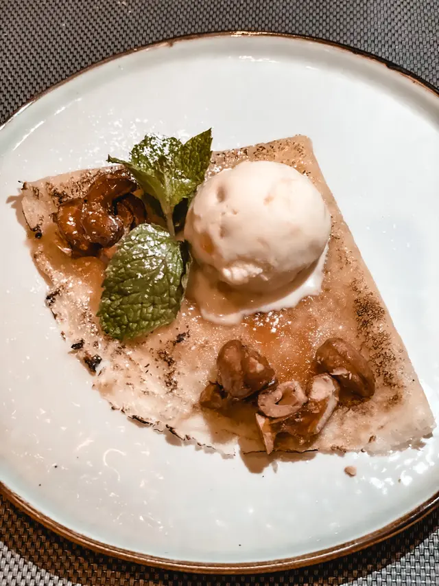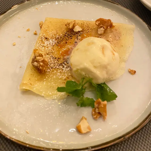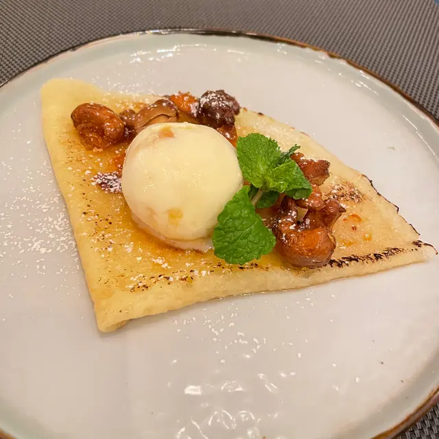 龍蝦濃湯名副其實,龍蝦鮮味非常足嘅龍蝦湯。烤龍蝦拼海斑魚 (請原諒咁迷幻嘅相,實在喺太心急,一心想快啲食到個主菜,完全唔為意張相Blur哂)半隻龍蝦同魚嘅份量相當足夠,火候掌握到好好,龍蝦非常彈牙,魚肉好滑,唔會好乾。燒焦糖班戟配蜜糖脆脆雪糕唔會好死甜嘅甜品,食落去清清地,中和番成餐龍蝦嘅濃味,完美收尾。…查看更多