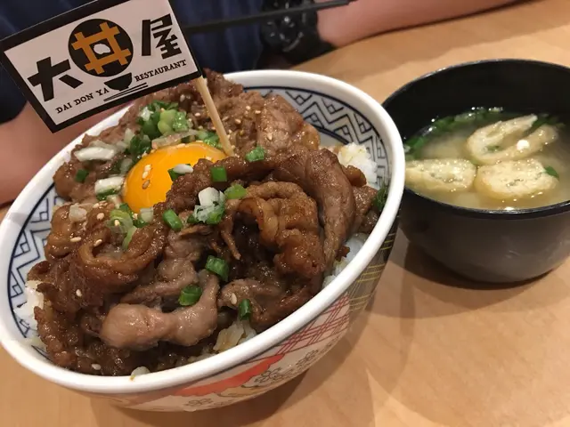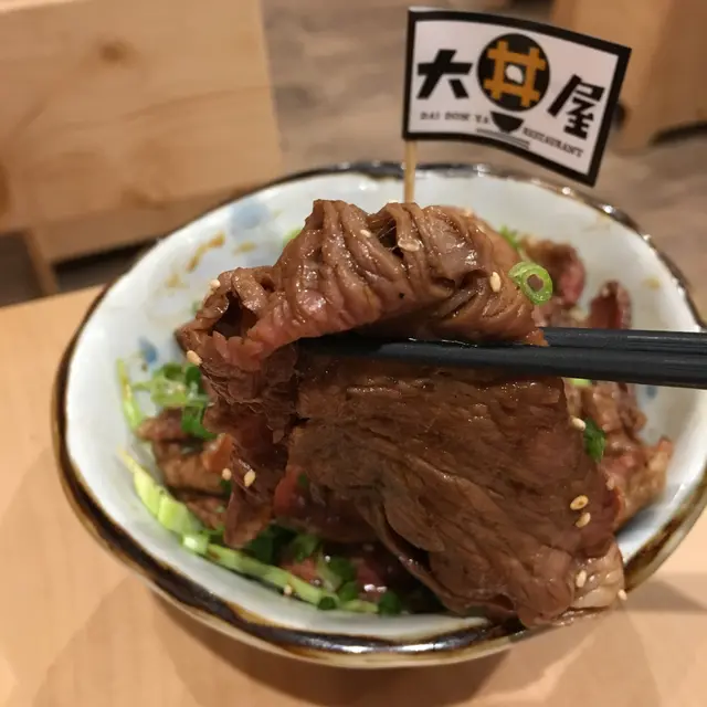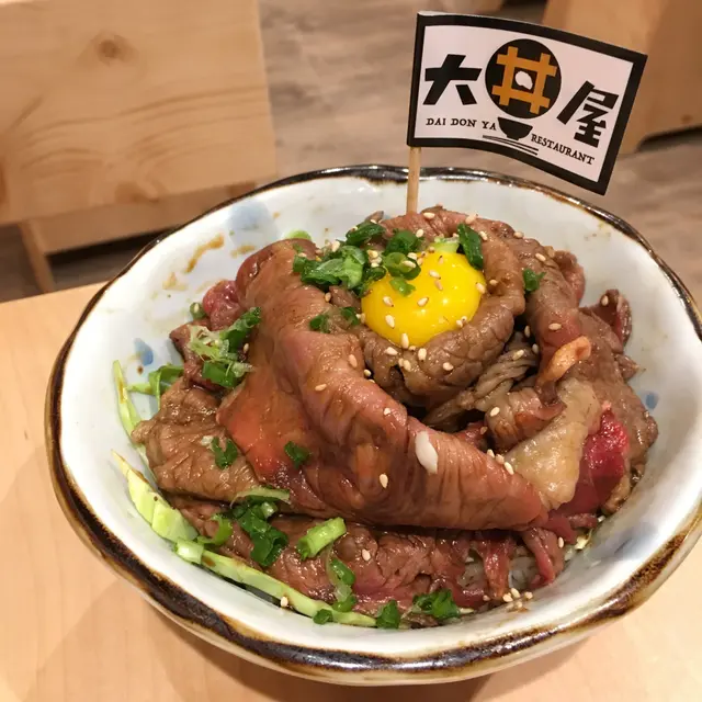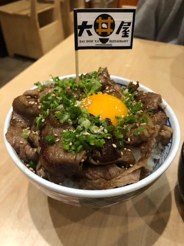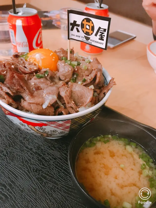 日本菜真的是久不久就會想吃,雖然剛在日本回來不久,吃晚餐的選擇還是不會抗拒日本菜。是晚在荃灣,想簡單吃個飯,來到附近發現有便宜的丼飯,商場門口一上扶手電梯便看見,就決定在這裡解決了。顧名思義,大丼屋賣的基本上都是丼飯,還有少許小食和飲料選擇。最便宜的丼飯只售$38,晚餐吃更為花算。環境也算不錯,乾淨企理,木枱和像是箱子的木椅都很新淨,坐得舒適。我們實在太肚餓的關係,所以點了三個丼飯和兩個小食。走進來時看見別桌的丼飯碗子不算大,還以為不會很飽,誰知真的不簡單,原來每碗都非常足料,米飯更是塞實了整個碗,一人一碗已經夠飽。點丼飯還會附湯,是麵豉湯配海帶和豆腐。麵豉香而不過鹹,漿粉製豆腐滑溜,海帶也很有咬口,暖過胃後我們便開動了!牛肉偏瘦但不會嚡口,牛肉汁味道濃郁得來剛剛好,加生雞蛋黃令牛肉更滑。最讚的是飯粒也有牛肉汁,所以不會單寡。