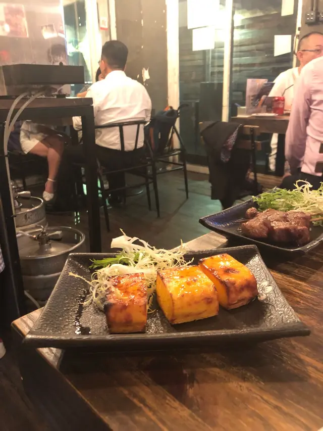 朋友話山林道呢到有間隱蔽嘅小店專食串燒唔錯,帶我黎尋寶,估唔到一條小巷入面看似平平無奇,原來藏左一間串燒店係巷尾,唔係佢帶我黎都唔識呀😯呢到主打都係食串燒飲啤酒,所以就嗌到食餸飽😆✨鹽燒厚切牛舌🐮 $68呢個牛舌真係必點🌟🌟厚切又大件,有口感得黎但又完全唔韌,唔會淨係得孜然味,牛脂分佈唔錯✨豚肉腐皮卷🐷$48呢個配搭未試過所以就叫左,一層豚肉包住一層腐皮,夠晒大件,可以自己加啲七味粉食都幾新穎✨醬燒金菇肥牛卷🍄 $48啲金菇都幾多,唔似出面嘅金菇肥牛,呢到係增量版。如果多番啲汁會更好,性價比算高✨車打芝士燒扇貝 (三隻)🧀 $88扇貝上面加左滿滿芝士粉,唔算大隻,勝在芝士味夠香濃,滋味😋✨汁燒墨魚咀 🦑 $34墨魚咀唔算太大粒,有咬口✨川式脆燒雞軟骨🦴 $28雞軟骨係食串燒必點嘅一樣!28蚊有兩串,仲係舖頭推介,脆得黎又有肉,惹味✨燒玉子🍳 $32都幾滑溜,上面搽左一層蜜糖,偏甜✨札幌芝麻香燒餃子雞翼🍗 $49入面包左明太子餡,辣辣地,啖啖肉好正✨柒·手工啤酒 $78呢隻啤酒係呢到特有嘅,黎到呢到點可以唔叫粗口啤🤩我就揀左「柒」,帶少少果香甜味,比較適合女仔,容易入口整體都唔錯,可以有個隱世位黎啤一啤吹下水真係正,仲要係鬧市,旺中帶靜👍🏻👍🏻…查看更多