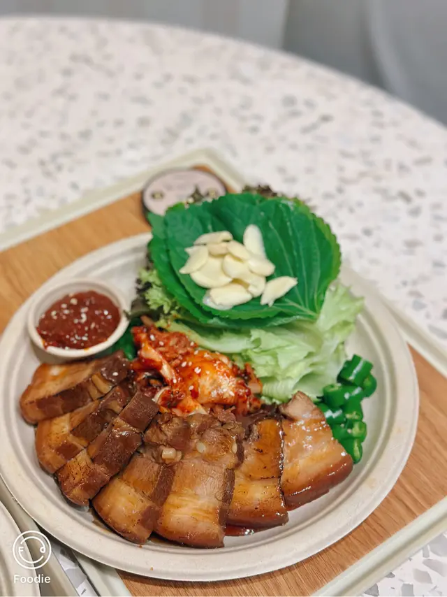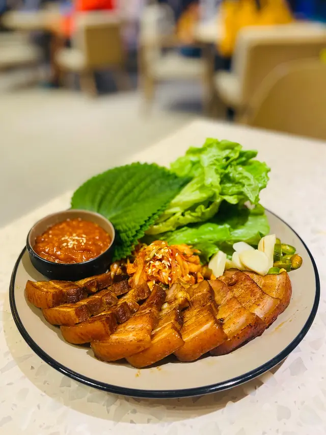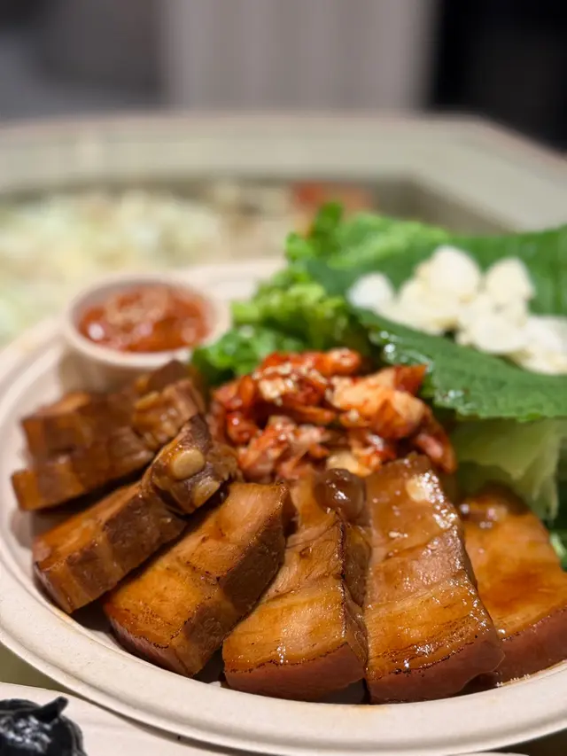 燒醬油黑毛豬白切肉配大醬生菜鹹鮮融合,健康美味