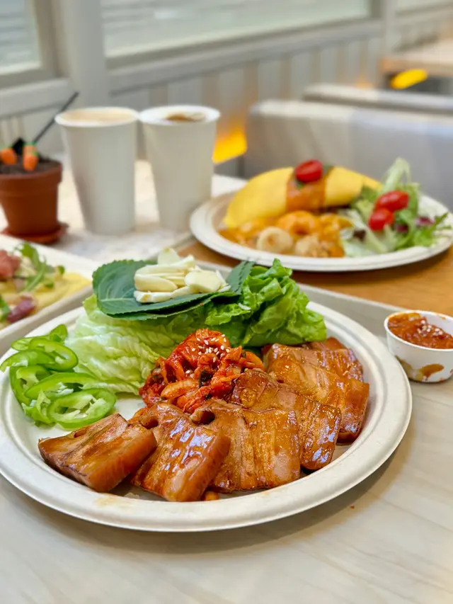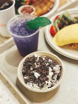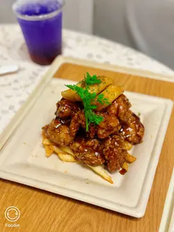 嚐吃套餐的烤牛肉蛋包飯,金黃蛋皮軟滑,米飯Q彈:)無骨蒜香炸雞金黃酥脆,口感外脆內嫩,蒜香撲鼻