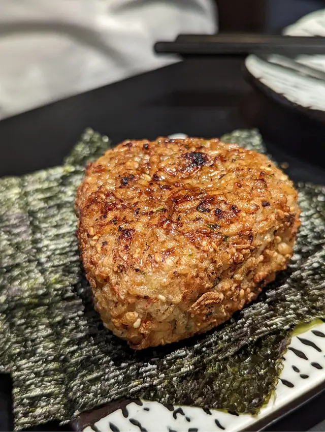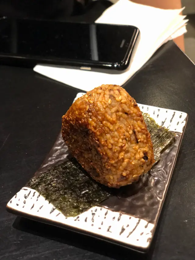 吃到尾聲以為有個甜品或者蔬菜水果出場,點知送上枱係兩件乾爭爭燒到有飯焦嘅飯團🍙真係有啲滴汗😓我都知通常omakase 吃到尾會有炒飯