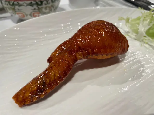 自從Jimmy’s Kitchen 關門大吉之後,我都沒有到過這個位置吃飯。上年曾經訂過這裏一次,但朋友臨時工作改行程,而取消了飯局。今年生日飯,父母要求吃中菜,本來我想到二星米芝蓮欣圖軒的新版麗晶軒,可惜預訂得太遲,臨時打電話到廚魔名人坊,幸運地訂到僅餘的大堂散座。廚魔名人坊的環境並沒有與其他為摘星而生的高級中菜浮誇Fancy,反而有一點點平實高雅的感覺,不會令人吃得太侷促。今晚酒樓用屏風分隔了散座及另一邊壽宴區域,散座區枱與枱中間的距離還可以,不會太過接近。我們一行四人,根據餐牌內廚魔推介或富哥推介,點了八個餸菜。以下一一介紹:燕窩釀雞翼,雞翼是新鮮的,並不是雪藏雞翼,內裏燕窩豐富,皮脆內嫩,沒有絲毫的油膩感,強烈推介。