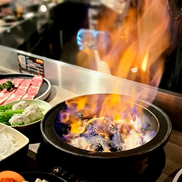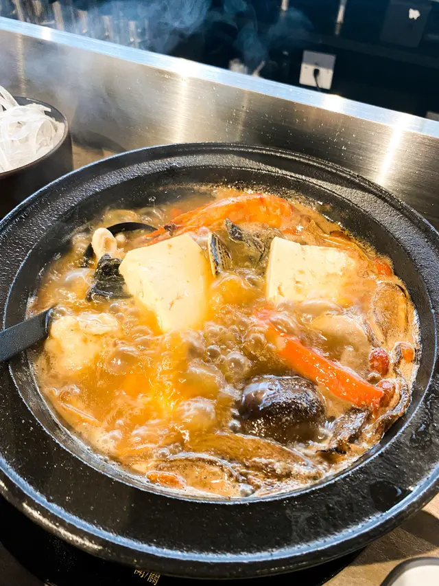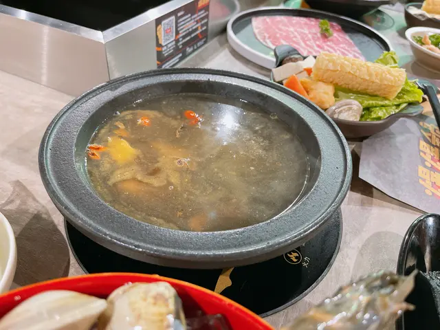 90MINS半自助一人爆炒火鍋放題,不但頗有台味,價錢還豐儉由人,吧檯座位尚算闊落,坐得舒適!Step 1 選主餐10選1,從雞、牛、豬,到素菜和海鮮都有,最便宜$88有交易。牛魔王不會放過吃靚牛的機會,$168的安格斯牛小排及$188的澳洲M5和牛肩胛肉眼都非常高質,尤其是後者,雪花完美均勻,牛味濃郁嫩滑,而且份量都不少。Step 2 選主食白米飯、寬粉、新竹米粉3選1,台灣製造的新竹米粉小小一個,但很吸湯。附送的蛤蜊菜盤多款少量,除了蛤蜊和菜菜外,還有響鈴、芋頭、蟹柳、丸丸、蕃茄等。Step 3 選鍋底8選1湯底,除了有台灣風味的剝皮辣椒烏雞鍋及夜市養生排骨鍋等外,倆口子選擇的爆炒櫻花蝦鲜鍋(+$12)及爆炒燒酒烏雞鍋(+$18)都相當有鑊氣和香味。店員會預先幫忙快炒鍋料,再加入湯底。不得不說,櫻花蝦炒起來實在是太香,燒酒烏雞也很有台灣醉物的惹味和酒香,兩款都大愛!Step 4 追加小吃 / 飲品除了自助區10款新鮮蔬菜可以無限Refill外,也可以追加單點台灣小食。不想吃炸物的話,可以選擇適合夏天、口味較Refreshing的鹽香四季豆 (+$18) 及鳳梨涼拌章魚 (+$22)。台飲寒天翡翠檸檬(+$18)大大杯,還可以選擇少甜、少冰,甜度剛好。最後結賬還有雪條贈送作Ending,超滿足!…查看更多